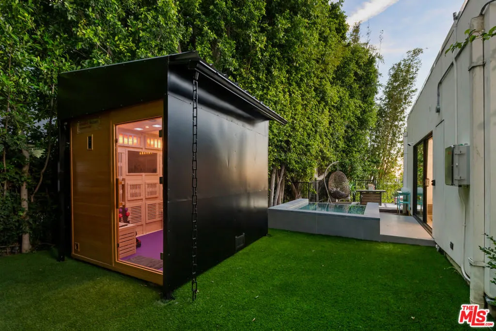 Perched above the iconic Sunset Strip in the exclusive Sunset Plaza enclave of Hollywood Hills West, this 3 bedroom 3 bath home offers sweeping panoramic views stretching from Santa Monica to LAX. A defining feature of the home is its dedicated wellness sanctuary, designed to bring the experience of a private spa and fitness retreat into everyday living. The wellness suite includes a full-size dry infrared sauna with integrated red light therapy, chromotherapy lighting, salt rock panels for natural air purification, and curated design elements including jade stone accents and a Zen Buddha focal point. The space also features a Peloton bike, free weights, massage chair with red light therapy, and a dedicated fitness media system, creating a fully integrated environment for relaxation, recovery, and daily training without leaving home. Designed with an open floor plan and refined attention to detail, this home offers a sophisticated lifestyle in one of the city’s most coveted hillside neighborhoods. Dramatic floor-to-ceiling glass windows flood the interior with natural light while framing breathtaking Los Angeles views. The expansive living room, featuring European hardwood floors and a gas fireplace, opens seamlessly to a wraparound deck that captures sweeping panoramic views and creates a true indoor-outdoor living experience. A separate dining area provides an elegant setting for gatherings and entertaining. The gourmet kitchen is equipped with a premium Miele appliance suite including a 6-burner range with flat-top plancha, convection oven, dishwasher, and full refrigerator and freezer. Italian porcelain countertops, custom German soft-close cabinetry, a Miele Sommelier wine refrigerator, additional wine chiller, pasta filler, InstaHot system, and reverse osmosis water purification complete this thoughtfully designed culinary space. The luxurious primary suite serves as a private retreat with stunning views and direct access to the deck. The spa-inspired bathroom features a steam shower with chromotherapy lighting and red light therapy, a freestanding soaking tub, smart Toto toilet with bidet, heated towel warmer, illuminated fog less mirror, and an expansive walk-in closet with center island. Outdoor living is equally impressive, highlights include a saltwater infinity-edge spool with pebble-tech finish and smart lighting, multiple outdoor dining areas, premium outdoor furnishings, built-in refrigeration, a Gozney pizza oven, and an Everdure smoker, perfect for entertaining. Additional amenities include Dolby Atmos surround sound, a 77″ living room TV with Dolby Vision, smart TVs throughout, gigabit internet with whole-home Wi-Fi 7 and hardwired ethernet, ADT security with cameras and smart locks, a dedicated office with Murphy bed and professional podcast setup, and a full laundry room with LG smart washer and dryer and LG smart dry cleaning system/ steam closet. The home also features whole-house water purification and softening, solar panels with Tesla Powerwall battery backup, an Ecobee smart thermostat, and advanced air purification systems. Located just moments from the premier dining, shopping, and entertainment of the Sunset Strip, this exceptional residence offers a rare combination of privacy, technology, wellness design, and panoramic views in the heart of the Hollywood Hills. Offered Fully furnished and completely turn-key. Solar panel system with backup battery storage significantly reduces utility costs.