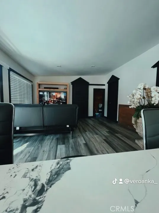 The fully updated kitchen features quartz countertops with a waterfall island, new cabinetry with soft-close hinges, and included appliances. Washer and dryer are also included in the sale.