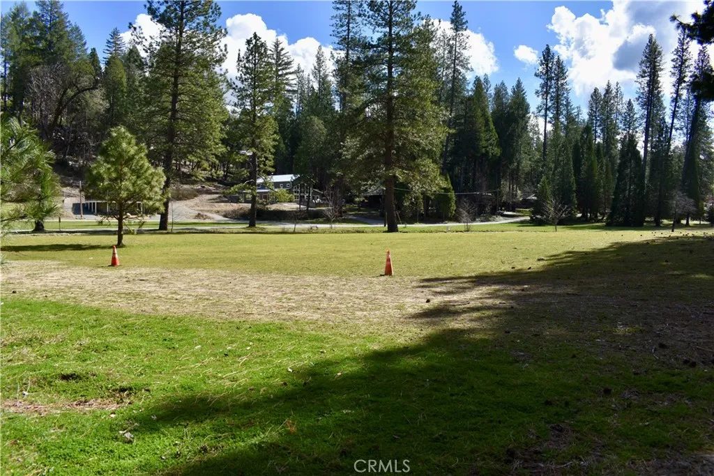 The property is gently sloped with a natural ravine and seasonal creek running along the rear of the lot, adding privacy and a tranquil mountain atmosphere. Surrounding terrain is mountainous and forested, giving the property the authentic feel of a Sierra Nevada retreat. The parcel was surveyed in the past.