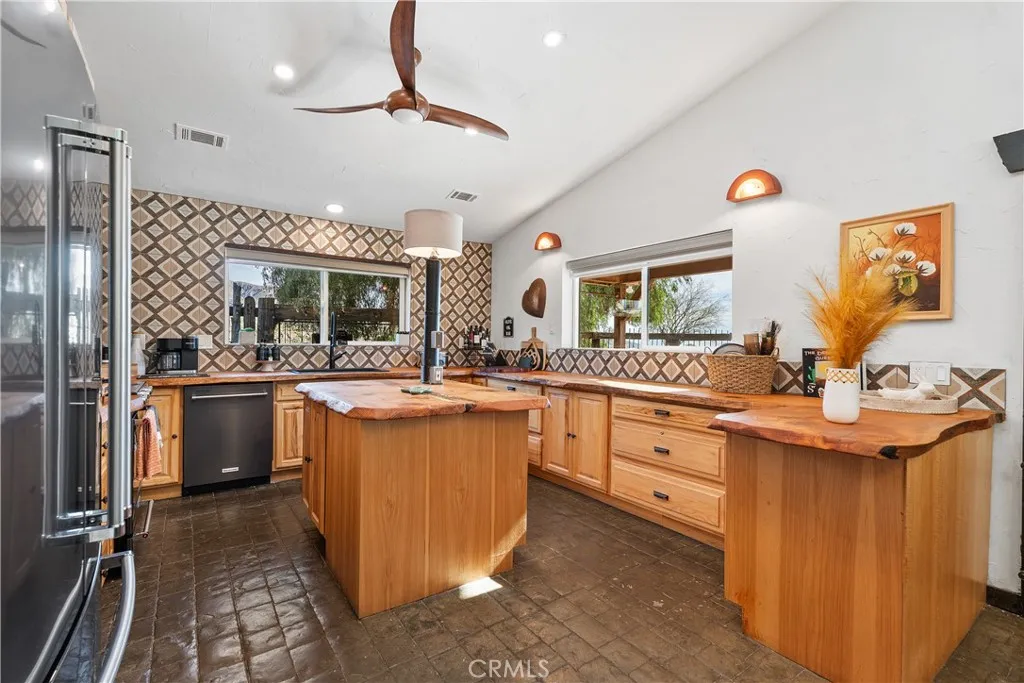 Discover a truly one-of-a-kind desert retreat! Set on a full acre with unforgettable 360° mountain and desert views, this remarkable property was crafted in 2001 by a desert-inspired artist and thoughtfully remodeled in 2023. The Desert Shack blends handcrafted charm with modern eco-friendly upgrades, showcasing features like custom doors, ironwork, stamped concrete floors, soaring ceilings, and preserved art installations that make this home unlike anything else on the market. This 2-bedroom, 2-bath residence offers a spacious, entertainer-friendly kitchen complete with custom cabinetry, custom live-edge wood counters, and new KitchenAid appliances. Step outside to your private oasis featuring a brand-new saltwater pool and spa and double convertible pergolas–perfect for soaking in the sunsets. An additional detached outdoor room provides flexible space for a guest suite, art studio, or pool house. All of this serenity is just a 20 minute drive from Palm Springs airport, casinos, shopping, and Joshua Tree National Park. Conveniently located off the I-10 and Highway 111. If you’re seeking a unique blend of artistry, comfort, and breathtaking natural beauty, this is the home you’ve been waiting for. This property also has a strong short-term rental history call for income history.