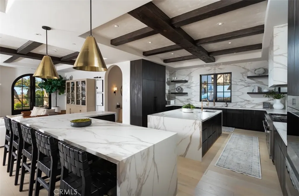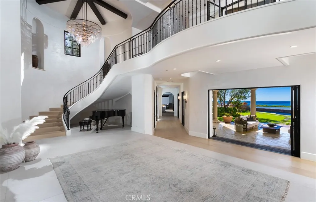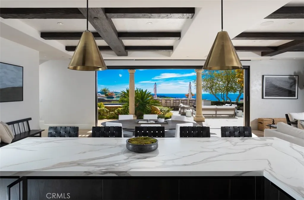 Among the finest trophy estates to be publicly offered along the California coastline, this exceptional ocean view residence is situated behind the guarded gates of Pelican Crest in Newport Coast, positioned on a rare ~¾-acre parcel within one of Southern California’s most prestigious enclaves. Recently and extensively redeveloped with holistic wellness and modern luxury in mind, the estate spans approximately 11,200 square feet and showcases refined contemporary design, advanced home automation, and seamless indoor-outdoor living throughout. The residence offers six en suite bedrooms and eight bathrooms, complemented by expansive entertaining spaces designed to capture panoramic ocean and sunset views. Set back from the street behind private iron gates, the property features a long drive leading to a concealed multi car garage, creating an exceptional sense of privacy and arrival. A dramatic foyer introduces the home, where walls of glass frame breathtaking coastal vistas. Expansive custom windows and sliding doors integrate the interior with resort inspired outdoor living spaces, including multiple pools and tranquil water features.The chef’s kitchen is appointed with professional Wolf and Sub Zero appliances and a dedicated butler’s prep area. An elegant bar and lounge clad in backlit onyx leads to an expansive recreation wing featuring a full home theater and a professional Full Swing simulator. Wellness amenities include a dedicated indoor outdoor gym equipped with PRX Performance training systems, Tonal, an infrared sauna, and tranquil spaces designed for Pilates and yoga.Crowning the residence is a spectacular executive office with sweeping ocean views. The primary suite functions as a private retreat, offering a generous sitting area, retractable ceiling mounted television, and a secluded terrace with private spa overlooking the coastline. The spa inspired primary bath features floor to ceiling book matched stone, heated floors, and a shower framed by ocean vistas. A couture inspired walk in closet, influenced by Yves Saint Laurent, completes the suite. A rare offering within Pelican Crest, this estate represents an exceptional opportunity to acquire a newly transformed coastal compound of remarkable scale, privacy, and design.