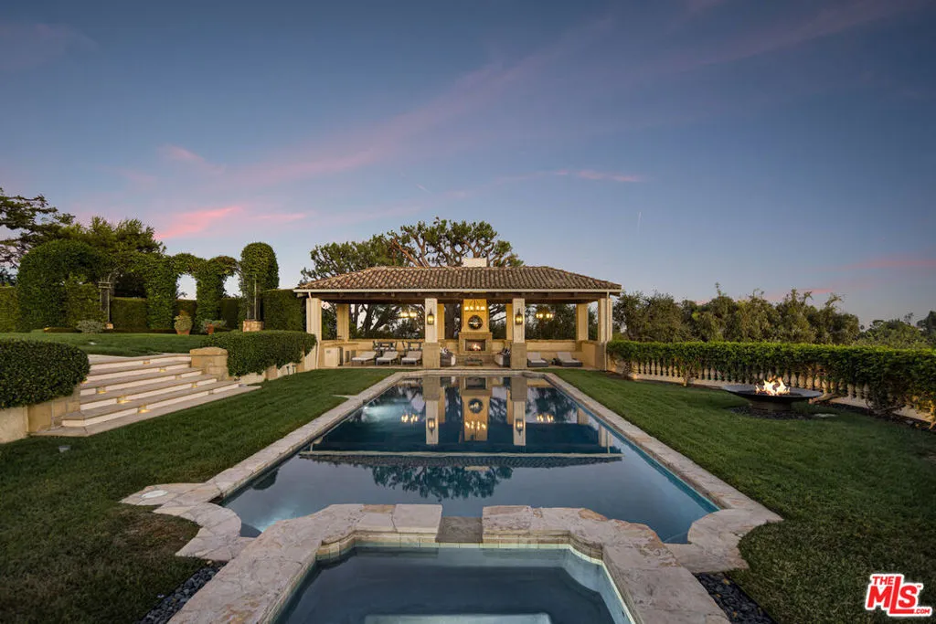 A rare legacy estate of exceptional scale and provenance, The Antelo View Estate represents a truly irreplaceable Bel-Air compound. Privately positioned at the end of a secluded road and secured behind double gates, the estate is set on a combined 5.35 acres of lush, park-like grounds across two APN’s an extraordinary landholding offering a level of space, privacy, and estate-scale living that would be nearly impossible to assemble today. Originally developed in 1989 by prominent figures from the entertainment world, the estate has been held by only two owners. Acquired in 2020, the current owner undertook a meticulous multi-year renovation and restoration in collaboration with the notable design firm KNA Design. The residence was thoughtfully modernized while the expansive grounds underwent extensive cleanup and landscape renewal, including the upgrade of the irrigation systems and operational improvements designed to allow the estate to be managed with ease while preserving its scale and beauty. The main living level offers both formal and informal spaces designed for elegant entertaining and comfortable daily living. Formal living and dining rooms are complemented by an informal living room library, creating inviting gathering spaces throughout the home. At the center of the residence, a large chef’s kitchen features custom white oak cabinetry, hand-selected marble countertops, dual oversized sinks, and a full suite of Miele and Gaggenau appliances. A fireplace, walk-in pantry, breakfast area, laundry, and staff accommodations add both warmth and functionality to this central gathering space. The 6-bedroom, 9-bath residence continues with expansive interiors filled with natural light and framed by sweeping views stretching across the Los Angeles skyline, surrounding mountains, and the Pacific Ocean. Multiple fireplaces and generous entertaining areas create an environment equally suited for large gatherings and relaxed everyday living. The lower level is designed for recreation and retreat, featuring a private theater with bar, fitness studio with steam shower, wine storage, and flexible staff or wellness quarters. Upstairs, four-bedroom suites include a remarkable primary retreat with dual spa-inspired baths, expansive dressing rooms, a private office, fireplace, and a sweeping terrace capturing the estate’s panoramic vistas. Beyond the main residence, two independent guest homes expand the compound’s versatility. A nearly 3,000-square-foot two-story guest house offers two bedrooms, three baths, a full kitchen, and a dramatic great room opening to garden terraces and lawns. A second guest residence beneath the tennis court includes two bedrooms, two baths, kitchen, laundry, and private terraces ideal for extended family, guests, or staff. The grounds unfold as a private resort, featuring a dramatic swimming pool with cabana, manicured gardens, fountains, and a tennis court with grandfathered lighting increasingly rare feature in Bel-Air that would be virtually impossible to permit today. Interwoven pathways and a private golf cart circuit wind throughout the estate, underscoring the property’s remarkable scale. With multiple residences across two parcels and a layout well suited for generational living, The Antelo View Estate presents a rare opportunity to own a legacy Bel-Air compound of scale, privacy, and amenities that could no longer be built today.