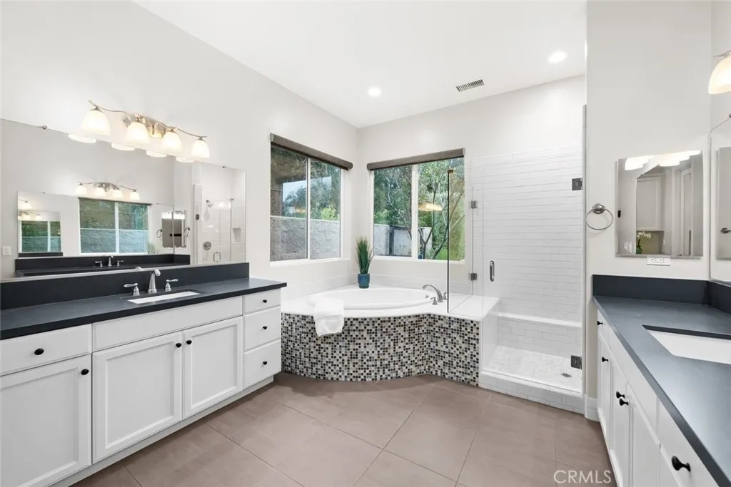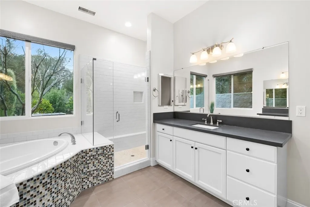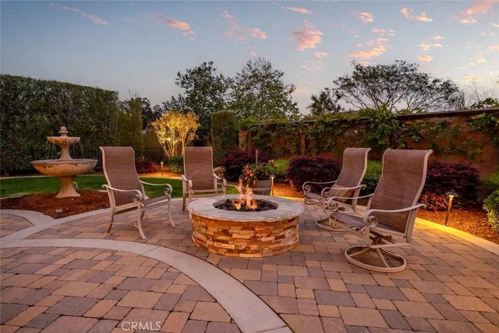 The expansive, east-facing backyard has been thoughtfully refreshed with extensive paver patios, upgraded lighting, a large gas fire-pit, two-tiered water fountain, and a jacuzzi hot tub—creating multiple areas for relaxing and entertaining. Raised garden beds, fruit trees, and fruitless olive trees are enhanced with lighting and upgraded irrigation systems, making the outdoor spaces both beautiful and easy to maintain.
