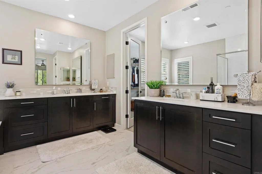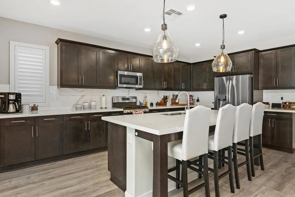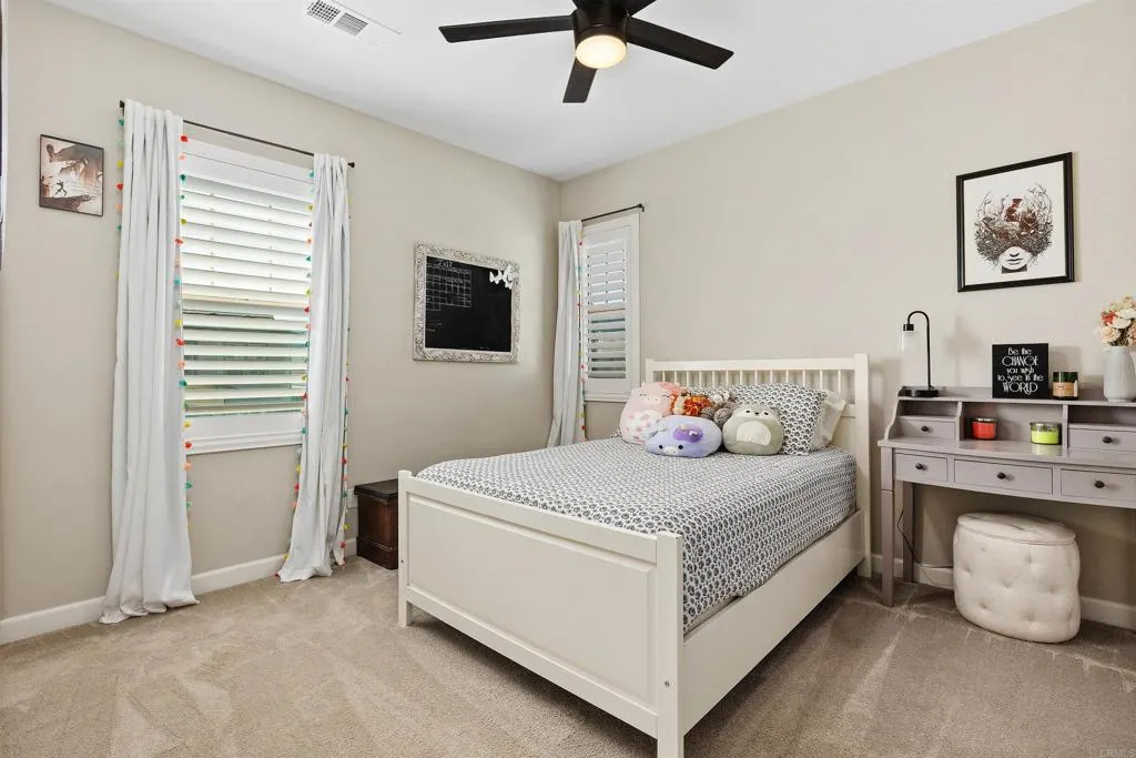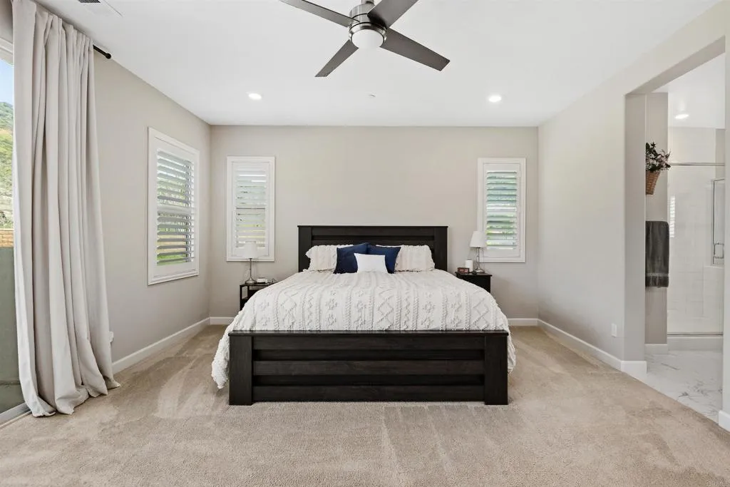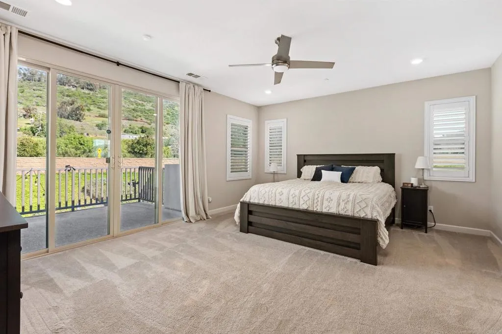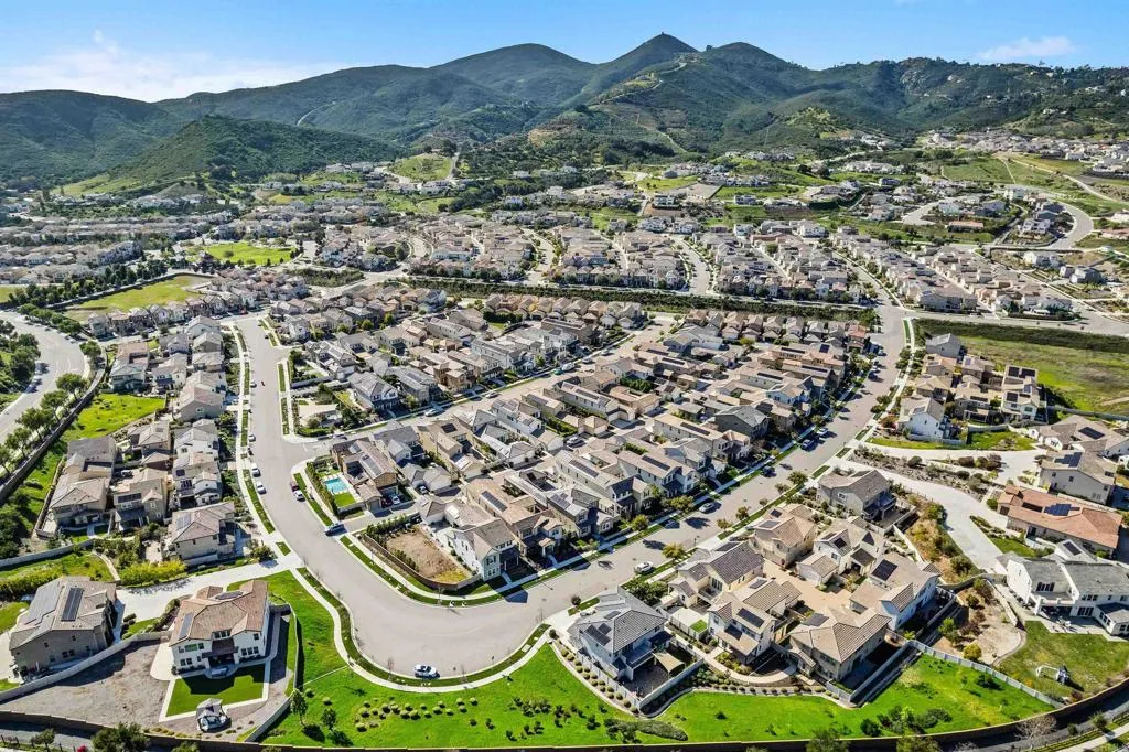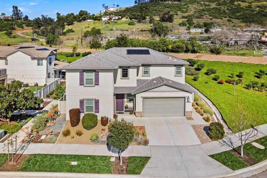 Amazing opportunity to own in the highly sought-after Harmony Grove Village, offering understated luxury and a true sense of privacy. Situated on a large corner lot with views of the surrounding greenbelt and hills, this home enjoys an exceptional location while still being just minutes from the abundance of amenities and strong sense of community that Harmony Grove Village provides. This turn-key residence welcomes you with an impressive open layout featuring four spacious bedrooms, a versatile loft, and a dedicated private office. The great room serves as the heart of the home, flowing seamlessly into the chef’s kitchen complete with stainless steel appliances, an oversized island, abundant cabinetry, and a walk-in pantry. Expansive California sliding doors create effortless indoor-outdoor living, opening to a peaceful backyard with hillside views—perfect for relaxing family time or entertaining guests. A first-floor en-suite bedroom provides ideal separation for guests or multigenerational living. Upstairs, the primary suite offers a private retreat with dual walk-in closets, a spa-inspired bath, and a secluded balcony overlooking the surrounding hills. The loft adds additional flexibility for work, play, or relaxation. With paid solar, a smart thermostat, luxury vinyl plank flooring, designer accents, wood shutters, and thoughtful upgrades throughout, this home delivers modern comfort with style. Harmony Grove Village features resort-style amenities including pools, spa, clubhouse, playgrounds, and miles of scenic trails. This exceptional home brings together privacy, elegance, and community in one of North County’s most desirable settings—just minutes from local shops, dining, and everyday conveniences. Enjoy luxury living, incredible community amenities, and a tranquil country setting.
