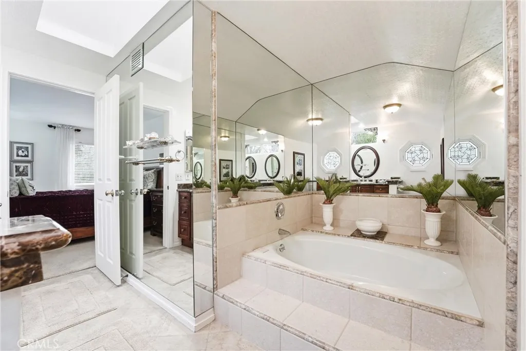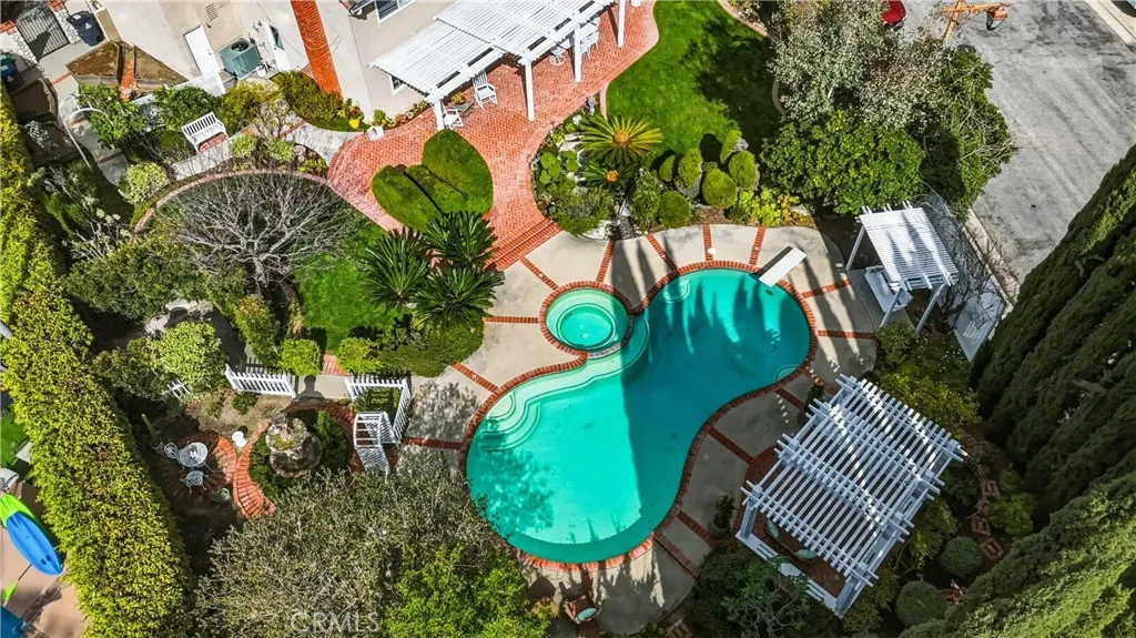 First time on the market since the 1970s, this cherished Anaheim Hills home sits on an extraordinary 14,250 sq. ft. garden property that has been featured multiple times on the renowned Mary Lou Heard Memorial Garden Tour. Located on a quiet cul-de-sac in the lush Anaheim Hills community known for its mature, towering pine trees, this 2,922 sq. ft. residence offers 3 bedrooms, 3 bathrooms, a 3-car garage and a large upstairs bonus room that many homeowners convert into two additional bedrooms, creating a potential 5-bedroom home. The inviting floor plan includes a formal living room, formal dining room, and a comfortable family room with a classic brick fireplace. The remodeled kitchen with center island opens nicely to the family room, making it ideal for both everyday living and entertaining. The downstairs level features beautiful gray porcelain tile flooring designed to resemble wide wood planks, along with a bathroom with shower and an indoor laundry room. Additional upgrades include a tankless water heater. Upstairs, all bedrooms are privately situated, including the spacious primary suite with dual sinks, a soaking tub and serene views overlooking the spectacular backyard gardens. The upstairs bathroom has been recently remodeled, and the oversized bonus room provides tremendous flexibility for additional bedrooms, a media room, or game room. The backyard is truly a private garden retreat. The stunning grounds—featured several times on the Mary Lou Heard Memorial Garden Tour—showcase mature specialty trees, fruit trees, vibrant flowering gardens, a tranquil koi pond, and a peaceful fountain. Designed for outdoor enjoyment, the yard also includes brick and concrete hardscaping, a patio cover, pool and spa and there are multiple raised wood planter beds specifically made for vegetable and herb gardens. Located near the Anaheim Hills reservoir with nearby hiking and biking trails, this exceptional property offers natural beauty, privacy, and space—all with no HOA. Homes with this much history, garden beauty, and pride of ownership rarely become available in Anaheim Hills.