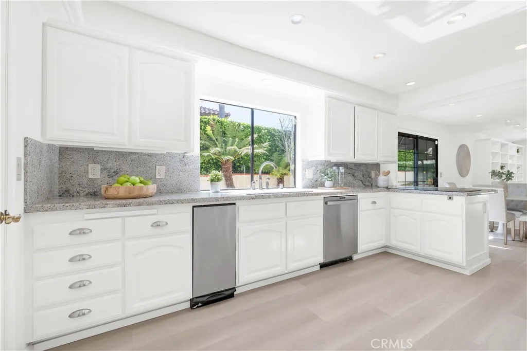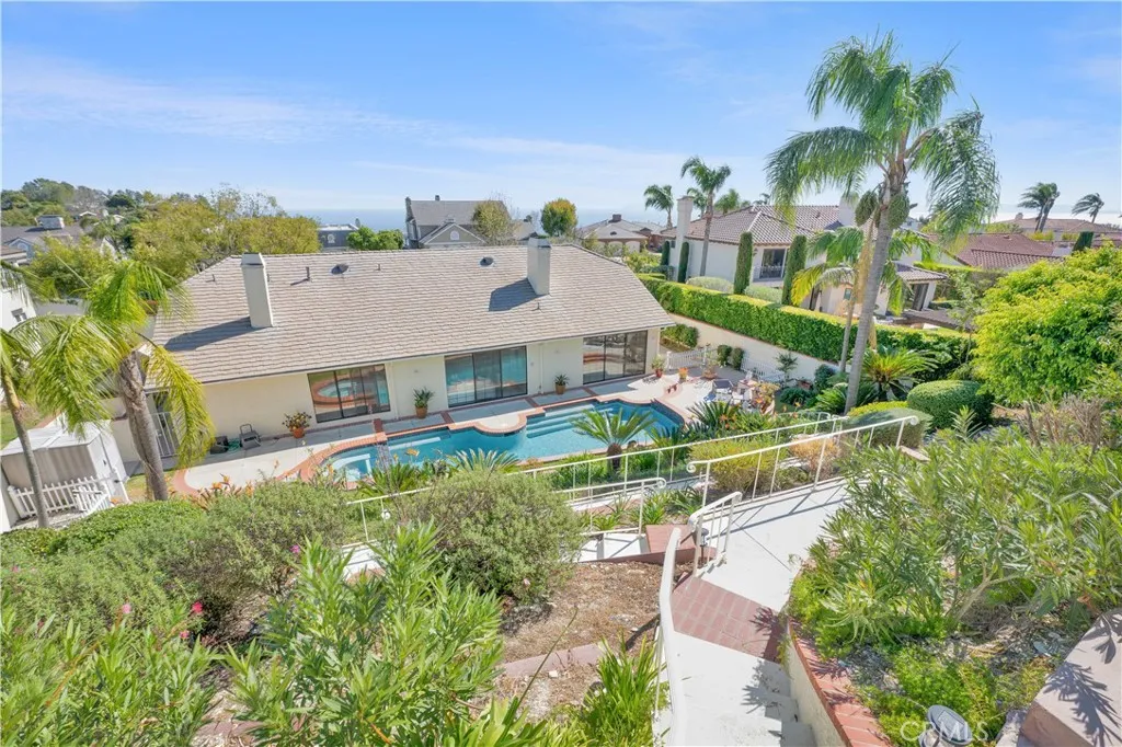 Stunning Single-Level home located in a highly sought-after ISLAND VIEW Community. This 4 Bedroom, 3.5 Bath residence spans just under 3,000 SQFT & features a sparkling Saltwater Pool surrounded by lush greenery nestled in a peaceful oasis. Upon entering, you are greeted by a grand entryway with a stunning chandelier. New Interior Paint & Luxury Vinyl Plank Flooring Throughout. Bright & Open Living Room boasts High-Ceilings and Marble surround Gas-Fireplace, while the spacious Dining Room features a coffered ceiling, New chandelier, & crown molding. A convenient guest bathroom with New Vanity is located just off the entryway. The inviting Family Room adjacent to the kitchen has a gorgeous view of the backyard and includes a gas fireplace with built-in shelving and cabinets, beverage center, & wetbar. The Kitchen is fully-equipped with White cabinets, Granite countertops, high-quality appliances, including a Samsung stainless refrigerator, two GE Profile microwave/convection double ovens, induction cooktop, and a walk-in pantry. The Breakfast bar and eat-in area is a wonderful space to enjoy the view of the camellia trees and blooming flowers while savoring your breakfast. The Primary Bedroom is spacious retreat including two walk-in closets, along with a beautiful en-suite bathroom featuring a separate bathtub and shower, and double sinks with marble vanities. Two Bedrooms with double-mirrored closets, and a window seating area. The Remodeled Bathroom with walk-in shower and Quartz Tile Surround is located conveniently in the hallway. The 4th bedroom, located off the kitchen area, can serve as a wonderful guest room or private office space and includes a three-quarter bathroom with shower. The laundry room is conveniently located just off the kitchen, equipped with a wash sink, and provides direct access to your 3-Car Garage with ample built-in storage. Outside, you’ll find a lovely garden with outdoor seating areas, swimming pool with an overflowing jacuzzi. The upper-tiered yard includes landscaping & apple, lemon, and plum trees. A Peek-a-boo Ocean view from the top tier could allow for seating to enjoy the ocean sunsets. This wonderful private & quiet community includes 2 Pickleball courts to enjoy. Walking distance to Del Cerro Park & Nature Trails. Close to the finest restaurants, shops, & Terranea Resort. Award-Winning Palos Verdes School District.