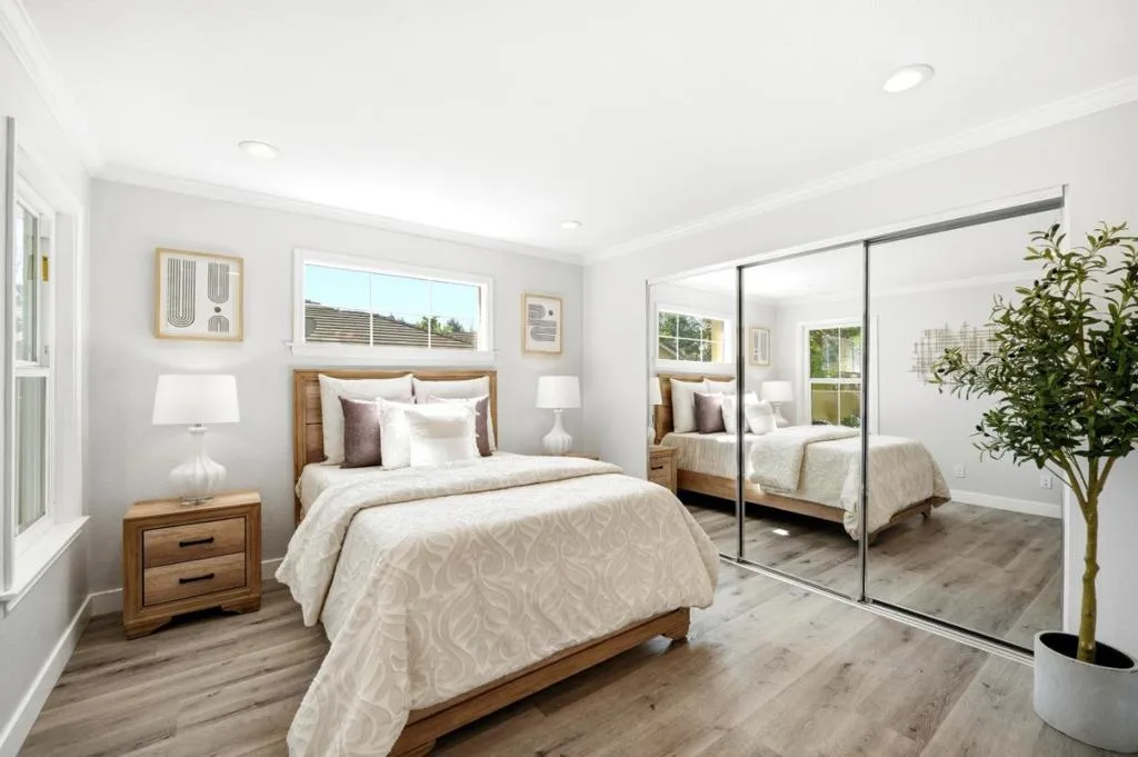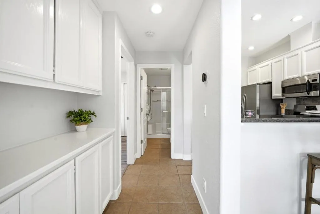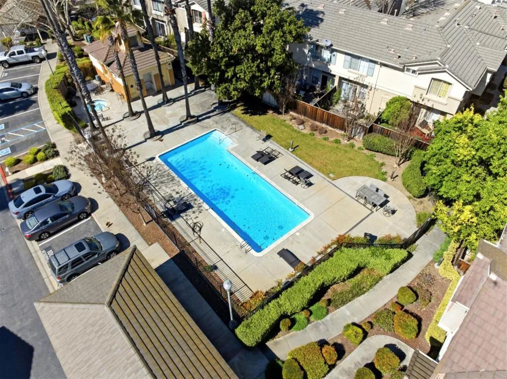Bright and move-in ready, this sunny townhouse is in the desirable Greens at Palmia community. The well-maintained home features updated laminate flooring and abundant natural light throughout. The open kitchen offers granite countertops, stainless steel appliances, a gas range, recessed lighting, and a pass-through breakfast counter connecting to the dining and living areas. Freshly painted cabinets in the kitchen, laundry room, and hallway add a clean, updated feel. The dining area opens to a private balconyperfect for morning coffee or relaxing outdoors. The primary suite includes custom closet organizers with mirrored doors, while the secondary bedroom also features custom closet organization, ideal for guests or a home office. The in-unit laundry area has extra storage, and the washer and dryer are included. Additional highlights include a Carrier heat pump for energy efficient heating and cooling with warranty, an attached one-car garage, and a private exterior storage closet. An extra assigned parking space is just steps away. Residents enjoy a pool, spa, and community walking paths, all conveniently near Palmia Park, shopping, restaurants and Kaiser. Plus, easy access to light rail and highways.