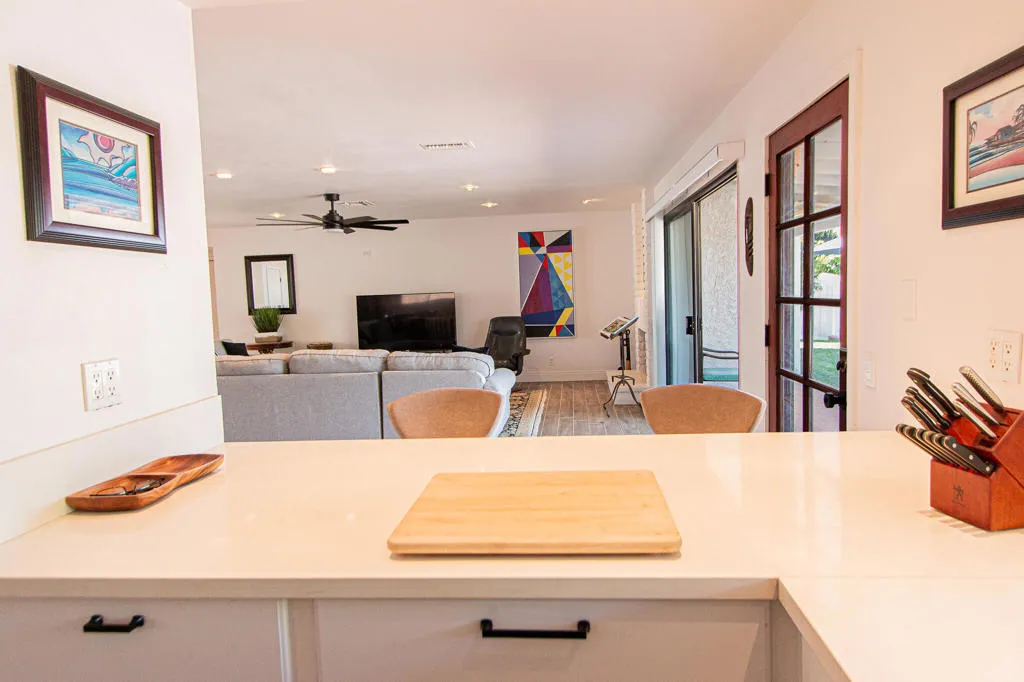 Welcome to this beautifully updated Palm Desert home where indoor/outdoor living comes to life.Located just minutes from El Paseo, The Shops on San Pablo, and The College of the Desert. This single-level 3-bedroom, 2-bath residence offers a bright open floor plan. The remodeled kitchen features white cabinetry, quartz countertops, and stainless-steel appliances, opening to spacious living and dining areas with sliding doors that frame beautiful mountain views. The primary suite offers backyard access and pool views, while two additional bedrooms provide space for guests or a home office.Step outside to a private resort-style backyard with a sparkling pool, spa, and towering palms–perfect for relaxing, entertaining, and enjoying the Palm Desert lifestyle.
