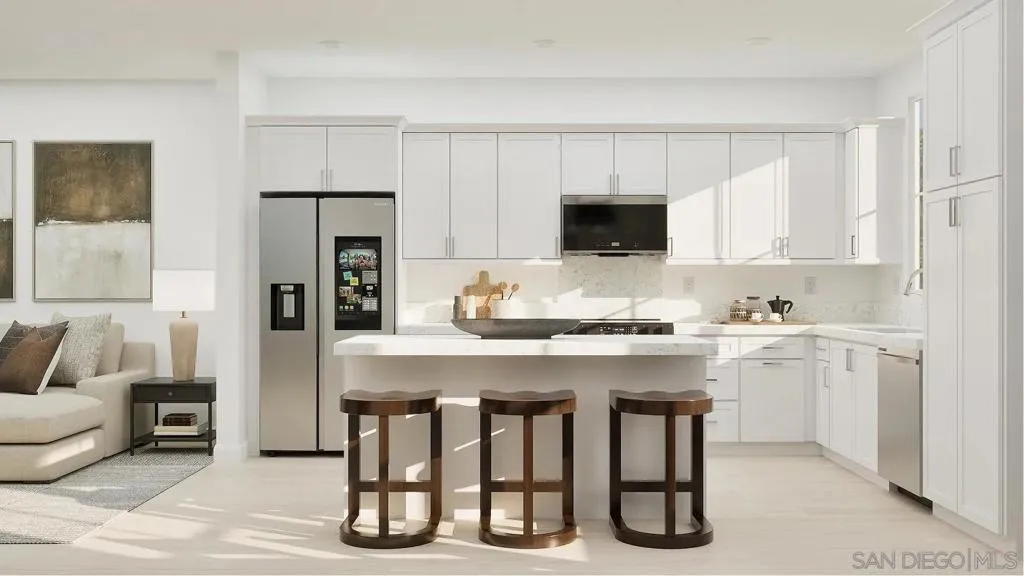 Step inside this beautifully designed 1,629 square foot, three-story townhome and discover a flexible first-floor space—ideal for a home office or studio, offering privacy and versatility right as you enter. The second floor showcases a seamless open-concept layout where the living, dining and kitchen areas flow together, highlighted by a generous kitchen island with quartz countertops, sleek Shaker-style cabinetry and premium Samsung stainless steel appliances. Enjoy effortless indoor-outdoor living with direct access to an inviting deck, perfect for entertaining or relaxing. Upstairs, all three bedrooms provide comfort and privacy, including a luxurious owner’s suite with a spacious walk-in closet, dual sinks and a standalone shower with glass enclosure. Modern touches abound, from LED lighting and smart home features to a two-car garage with an electric vehicle charging outlet. Homes with this level of style and thoughtful design are in high demand—schedule your tour before it’s gone! Fusion is a new community of townhomes for sale in El Cajon, CA. This community has a low tax rate