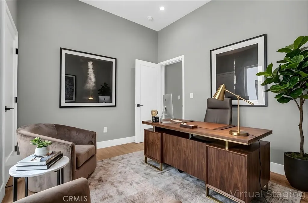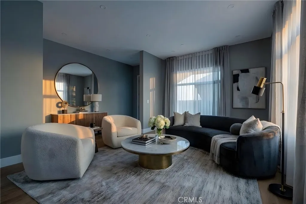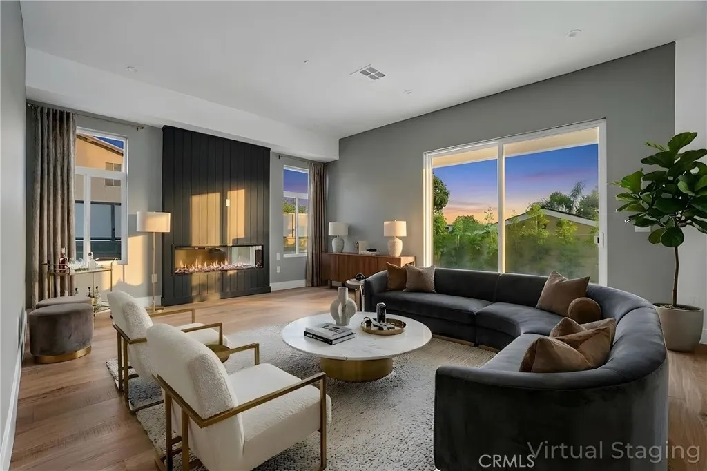 Additional highlights include a main-level bedroom and bath, ideal for guests, a home office, podcast/yoga room, or creative space, plus a two-car garage and multiple outdoor areas for entertaining or relaxing under the Southern California sky.