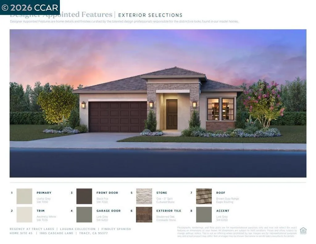 Welcome to Regency at Tracy Lakes 55+ active adult gated community , where luxury living takes center stage. With three picturesque lakes, this vibrant community offers a fishing dock, 1-acre community garden and dog park. With a wealth of amenities, including a clubhouse, pools, cabanas, yoga studio, fitness center, bocce ball, and pickleball courts, every day is an opportunity for relaxation and recreation. The onsite lifestyle director ensures there’s always something to look forward to; from fitness classes to comedy shows and wine nights. An alluring foyer hallway flows past a spacious flex room to the great room, open to the luxury outdoor living space. The gourmet kitchen offers stainless steel appliances, 36″ gas cooktop, large center island with breakfast bar, modern cabinets, and roomy walk-in pantry. Primary bedroom suite offers a generous walk-in closet and a spa-like bath with a dual-sink vanity, a large luxe shower with seat. Elegant craftsmanship, with 10-foot ceilings, 8-foot doors, 5 1/4″ baseboards, dual-pane Anderson windows, Western stacking sliding doors. 2- car garage, (photos not of actual home and yard, for marketing only)