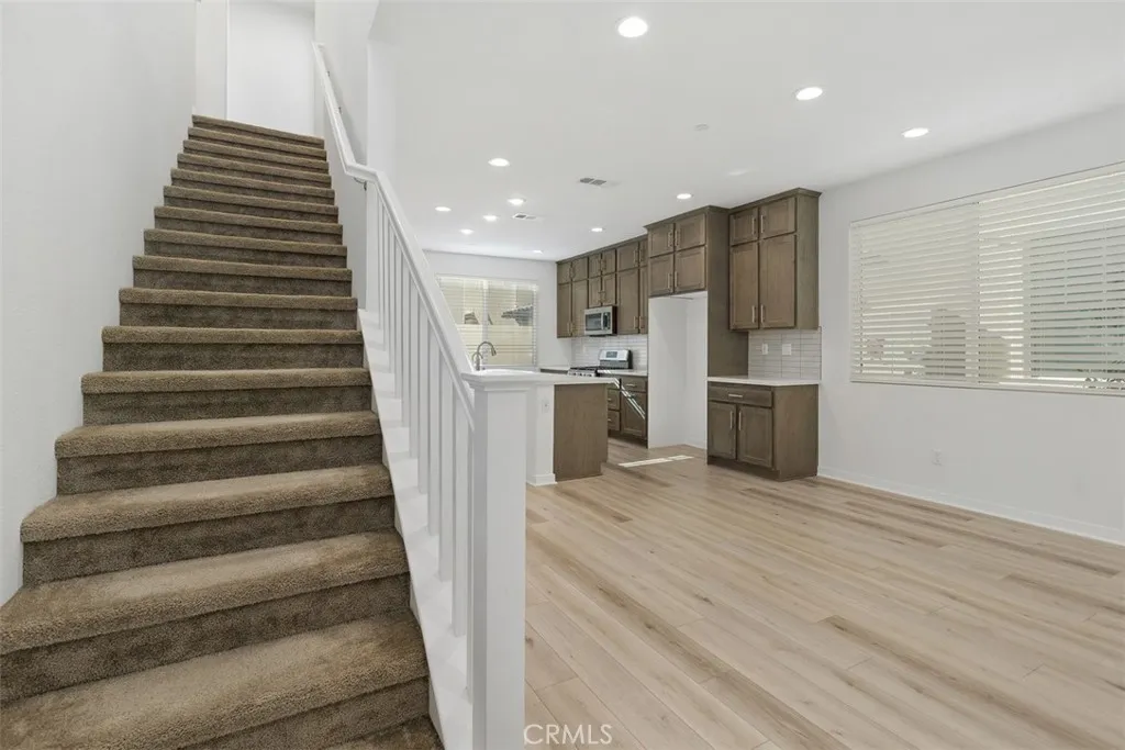 Welcome to Sommers Bend, one of Temecula’s most highly sought-after master-planned communities. Built in 2023, this turnkey 3-bedroom, 3-bathroom home offers approximately 1,755 square feet of thoughtfully designed living space with premium builder finishes, paid solar, and stylish upgrades throughout. The open-concept floor plan is filled with natural light and showcases upgraded flooring, designer fixtures, and modern touches. The spacious great room with a cozy fireplace flows seamlessly into the dining area and chef-inspired kitchen, creating the perfect setting for entertaining and everyday living. The kitchen serves as the heart of the home, featuring a large island with seating, stone countertops, stainless steel appliances, a walk-in pantry, and abundant cabinetry. Just off the kitchen, a built-in desk area provides a convenient workspace for remote work or homework. Upstairs, the generous primary suite offers a peaceful retreat complete with a spa-like bathroom and walk-in closet. Two additional bedrooms provide ample space and natural light, while the upstairs laundry room with sink adds everyday convenience. Additional highlights include a spacious two-car garage and low-maintenance backyard + paid for SOLAR! Residents of Sommers Bend enjoy an exceptional lifestyle with more than 21 acres of resort-style amenities. The community features a state-of-the-art clubhouse, fitness center, pool and spa, fire pits, BBQ areas, and multiple outdoor gathering spaces. Outdoor enthusiasts will appreciate the expansive park with soccer fields, baseball diamonds, basketball courts, and over eight miles of scenic walking trails. Ideally located in Temecula, the home is just minutes from award-winning schools, shopping, dining, entertainment, and the world-renowned wineries of Temecula Valley Wine Country. With its modern upgrades, functional layout, and vibrant community setting, this home truly delivers the best of Temecula living!