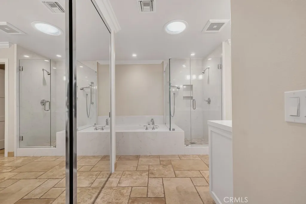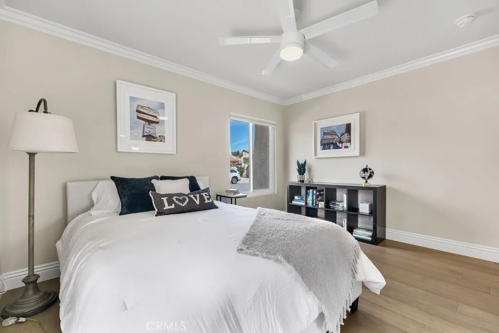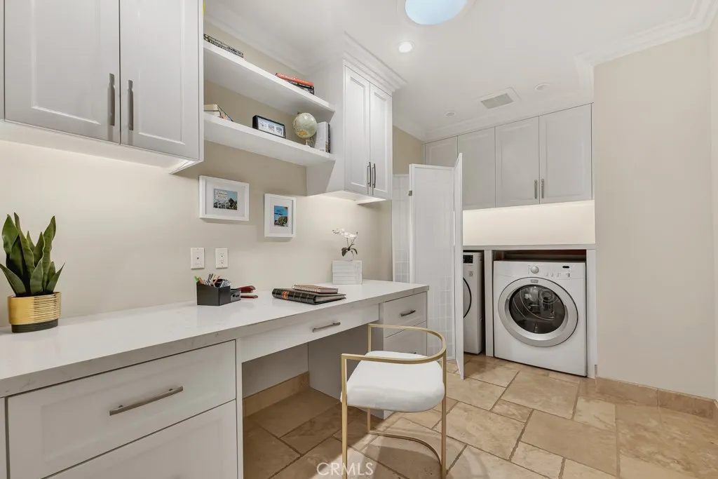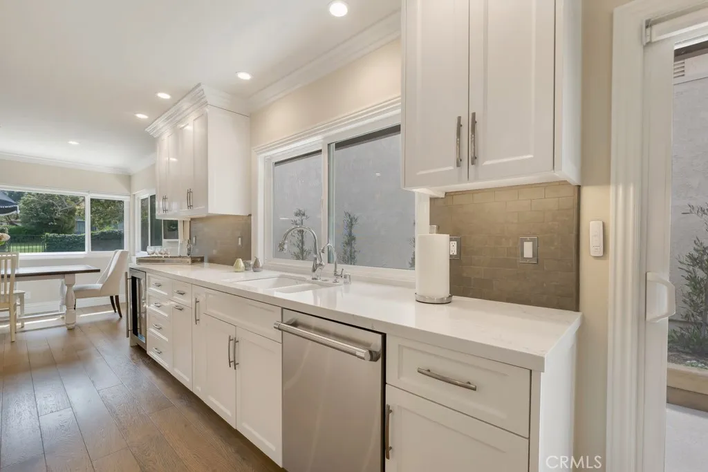 Welcome to this stunning true single-story home! A private gated entry courtyard leads to a light, bright, highly updated home offering vaulted ceilings, crown molding and wood flooring throughout the main living areas that are complemented by tile floors in the entry,office & bathrooms. The spacious living room overlooks the recently upgraded, professionally landscaped private backyard, complete with a remote controlled patio cover, synthetic turf lawn for easy maintenance & direct access to a spacious greenbelt which adjoins Westlake Lake. The completely remodeled kitchen includes quartz countertops, custom cabinetry, a huge center island, Thermador freestanding range/oven, refrigerator & dishwasher, GE microwave, and a wine fridge. At one end of the kitchen is a den with a fireplace and large wall-mounted TV, creating a cozy spot to relax. Just beyond the den is a beautifully upgraded and private secondary wing that includes a spacious bedroom with access to the side patio and an elegantly appointed bathroom. The expansive & airy primary bedroom overlooks the gorgeous backyard and includes dual cedar-lined closets, a private bathroom with custom vanities, quartz counters, dual sinks, & a separate tub & shower. The large office/utility room includes a custom built-in desk & cabinets, and the laundry area at the far end. This amazing home also includes an attached 2-car garage with built-in cabinets, newer electrical panel, LED recessed lighting, newer dual paned windows & sliders, updated plumbing, newer HVAC system & ducting, and a tankless water heater. The roof was replaced in 2018 with lightweight tile. All this in the heart of Westlake Village, near beautiful parks, greenbelts, tennis, trails, shopping, and dining.