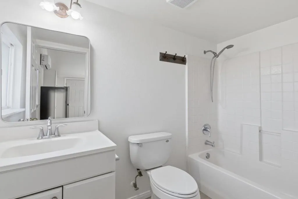 Comfortable living and practical design come together in this inviting studio-style unit with 1 bathroom, offering a bright and functional space that feels easy to settle into. Wide-plank flooring stretches across the main living area. An open layout allows the living and sleeping areas to share one flexible space, while a recessed nook and an open closet with shelving provide helpful storage options. Your kitchen is neatly arranged along one wall with white cabinetry, generous counter space, and a stainless steel refrigerator. A stainless sink and overhead cabinetry keep essentials within reach Meanwhile, the bathroom includes a tiled tub and shower combination, a single-sink vanity, and additional natural light from a frosted window. Positioned in Riversides La Sierra area, this location places everyday conveniences close by. Shopping and dining options at Galleria at Tyler are just a short drive away, featuring numerous retail stores, restaurants, and a movie theater. Riverside Plaza also offers Trader Joes, Nordstrom Rack, and additional dining options. Commuting is convenient with the nearby RiversideLa Sierra station, while local universities and neighborhood shops add to the convenience of the surrounding area.