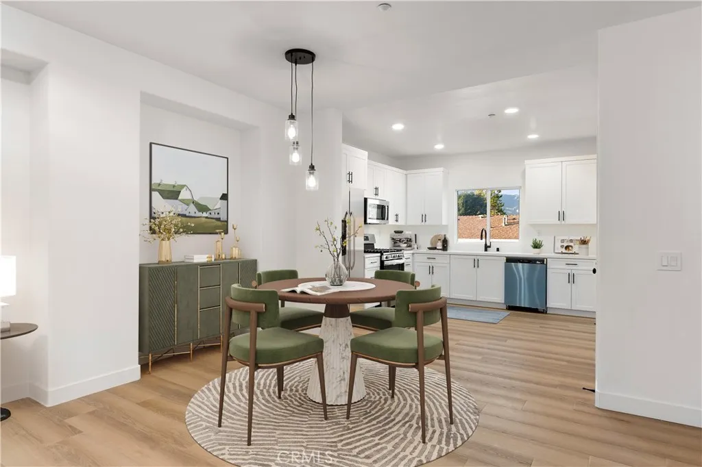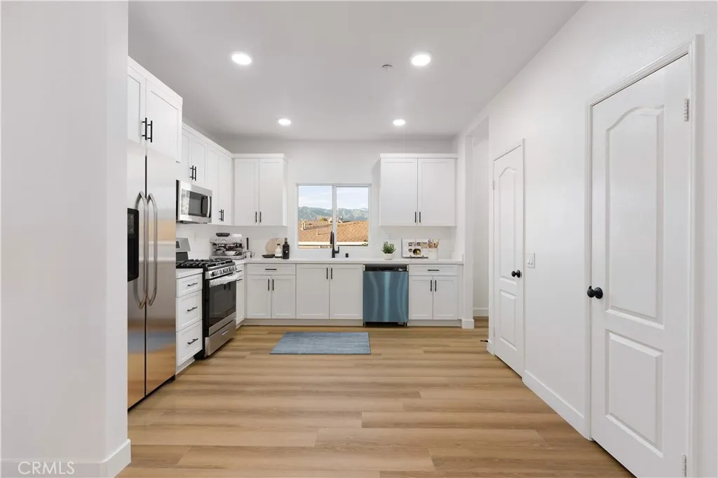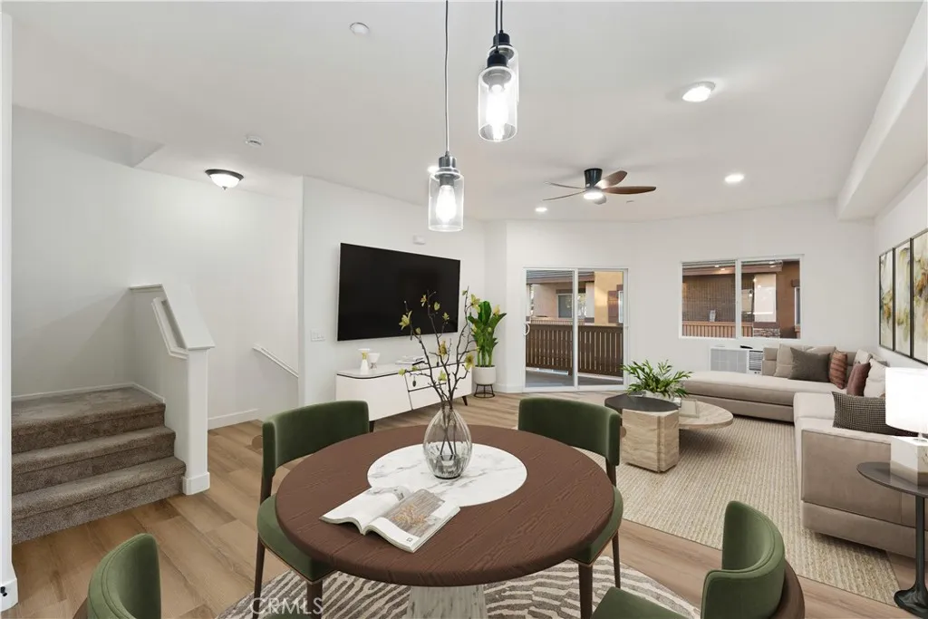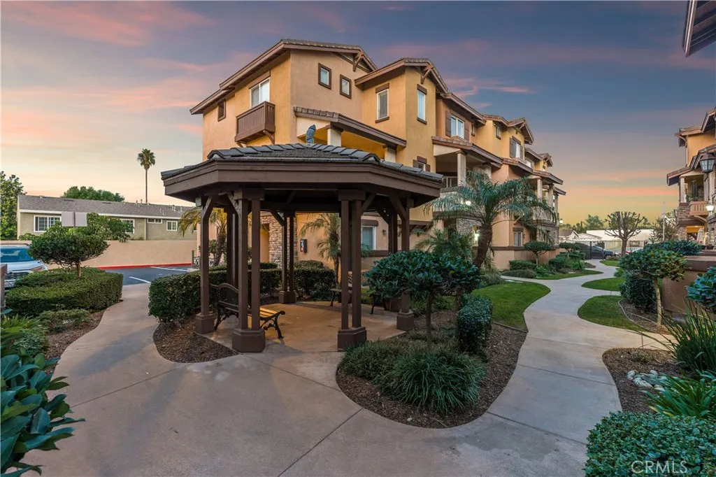 Located in the desirable Lark Ellen Villas, this virtually brand-new condo offers resort-style living in one of the nicest condominium communities currently on the market. Beautifully maintained grounds feature winding walking paths, a community gazebo, and attractive landscaping that create a welcoming and serene environment. The home is entered on the first floor, where you’ll find a main-level bedroom with double-door entry and an ensuite bathroom, complete with a sliding door that opens to a private patio. Direct access to the attached garage is conveniently located just down the hallway. The second level, offers an open-concept living space showcases a spacious family room with recessed lighting, LVP flooring, and a sliding door leading to a private view balcony. The family room flows seamlessly into the kitchen, creating an ideal space for everyday living and entertaining. The large kitchen features white shaker cabinetry with black hardware, quartz countertops, a coordinating black faucet, stainless steel appliances, a built-in desk/workspace, and a dedicated dining area with a niche positioned between the kitchen and family room. On the upper level, the primary suite offers a view window, ceiling fan, walk-in closet, and an ensuite bathroom with dual sinks and a shower/tub combination enclosed by a glass sliding door. The second upstairs bedroom includes a ceiling fan, a spacious closet, and its own ensuite bathroom with a walk-in shower. The upper level is complete with a laundry closet and additional storage.