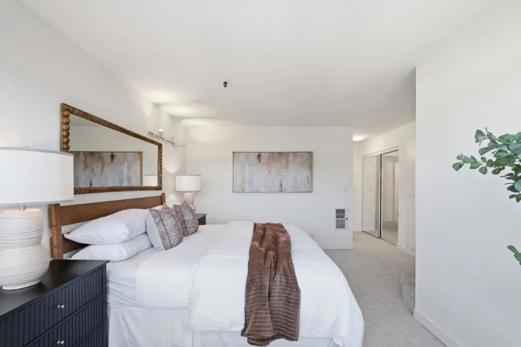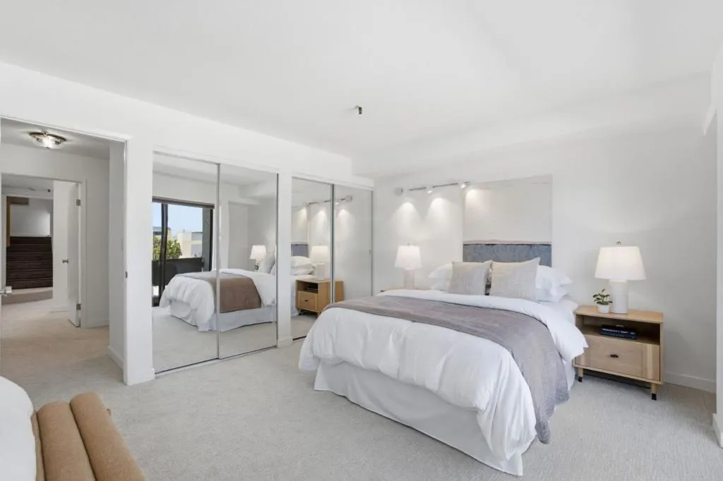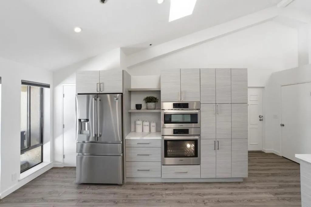 Top floor, two-level penthouse unit featuring dramatic vaulted ceilings with skylights on the main level, open concept living, dining and gorgeous kitchen, and views of the Western Hills! Downtown Palo Alto living at its finest, this two bedroom, two-and-a-half bathroom home offers an unbeatable location just a block away from Whole Foods, Peet’s Coffee, Pizzeria Delfina and the fantastic dining and shopping along University Ave. Stunning kitchen updated with sleek modern cabinetry, peninsula for extra counter space and pantry unit for storage. Additional comforts include a half bath on main level, in-unit washer dryer, building elevator, deeded storage unit and two parking spaces in the secure underground garage. Top-rated Palo Alto schools including Addison Elementary, Greene Middle School, and Palo Alto High School (Buyer to verify) and proximate to Caltrain and Highway 101 for easy commuting. This is a must-see!
