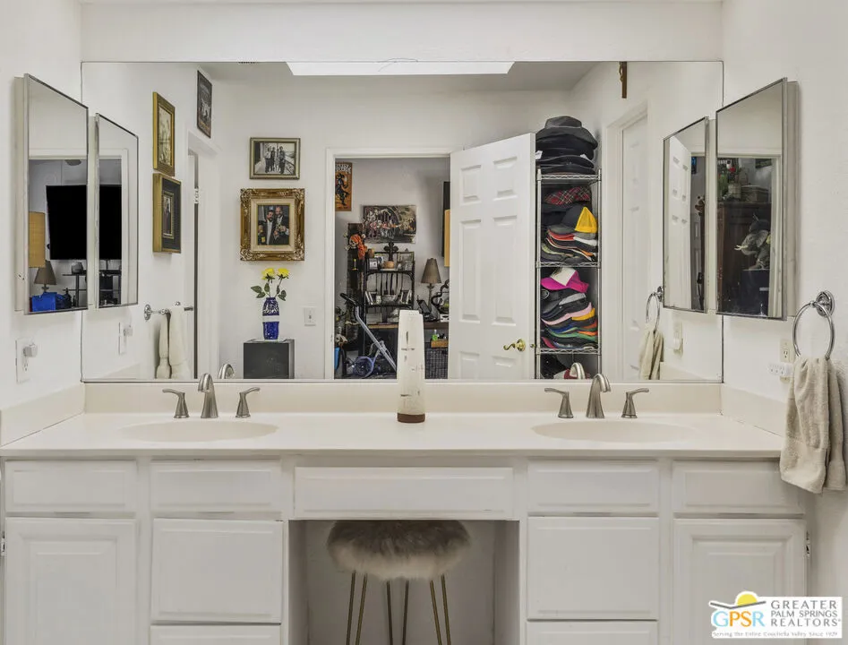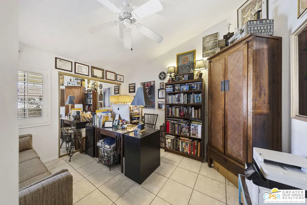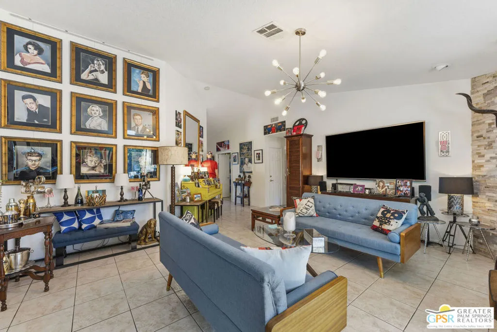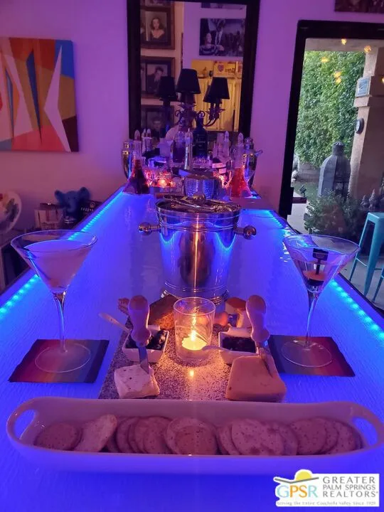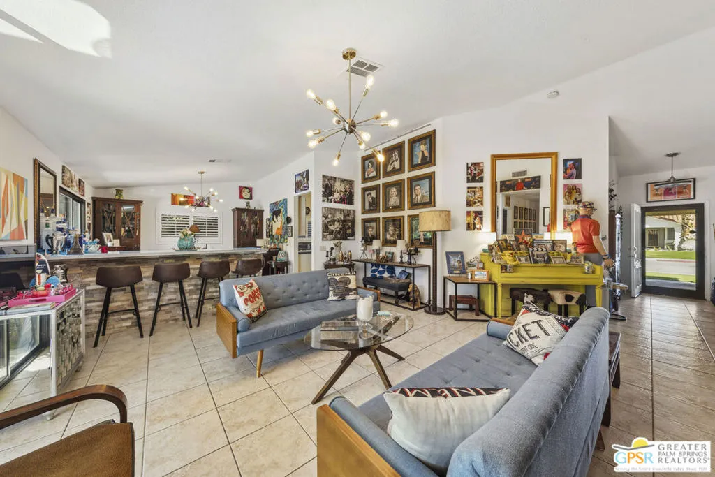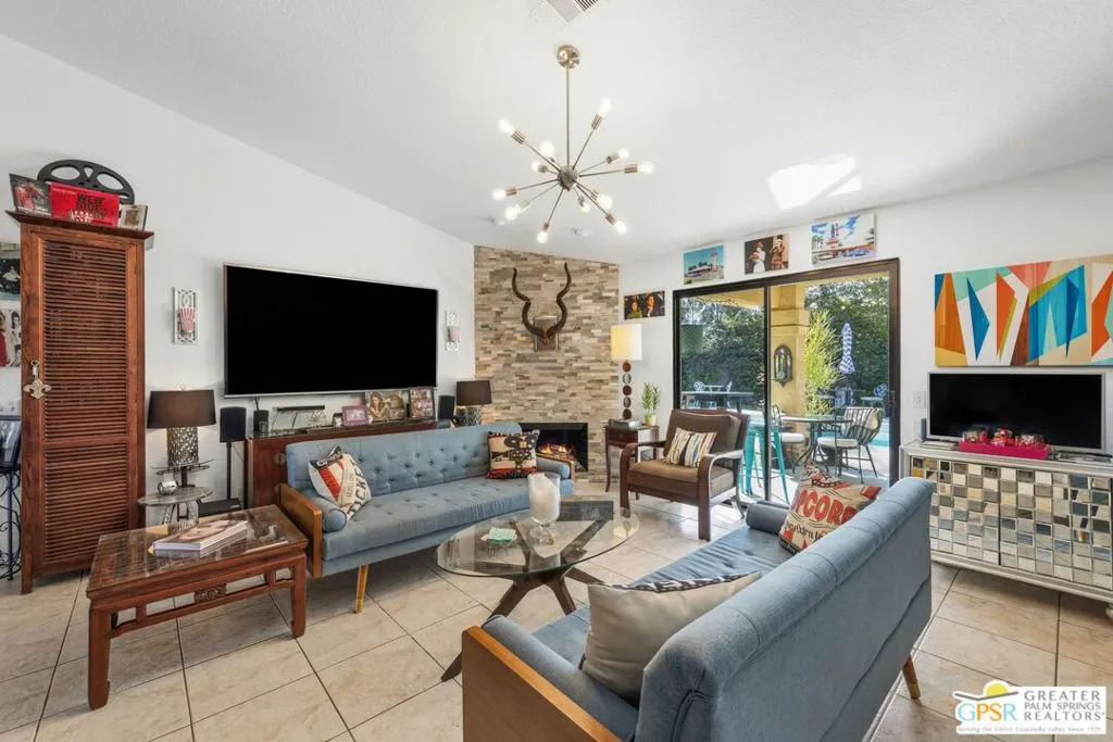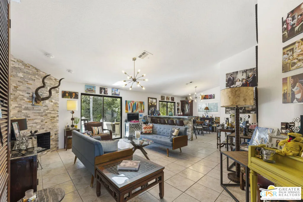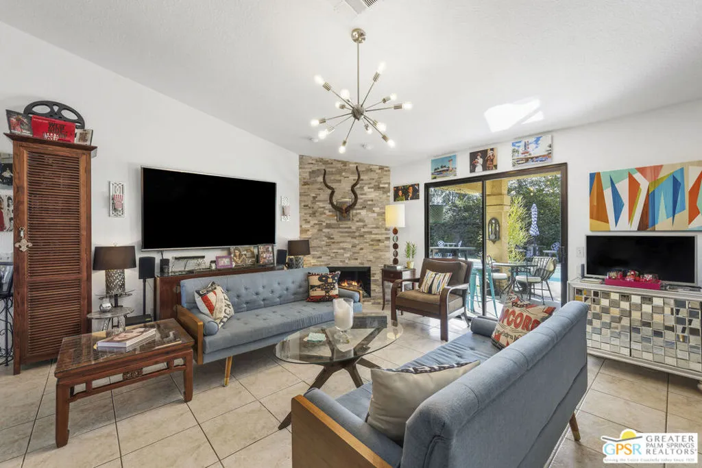 Welcome to your new home! This three bedroom three bath pool home has an abundance of natural light through the many sliding doors and windows throughout the home, all with custom shutters. A wonderful place to entertain, this home has a show stopper custom designed and built bar in the dining area, which allows for dinner seating for up to 8 people. Beautiful redone fireplace in the living room creates a tranquil environment. Step out into the back yard and imagine the possibilities. A large covered patio with ceiling fans is a perfect area to dine al fresco. The pool is 36 feet long with raised spa and waterfall. You can swim laps or entertain guests. A truly magical place to unwind! Synthetic grass in the front and back provide a low maintenance yard. Owner owned solar system provides most of your electricity, making this home very efficient. A two car garage has an additional storage room, which could be used for a golf cart or as a workshop. Plenty of storage. Come see this exciting home before it’s too late!