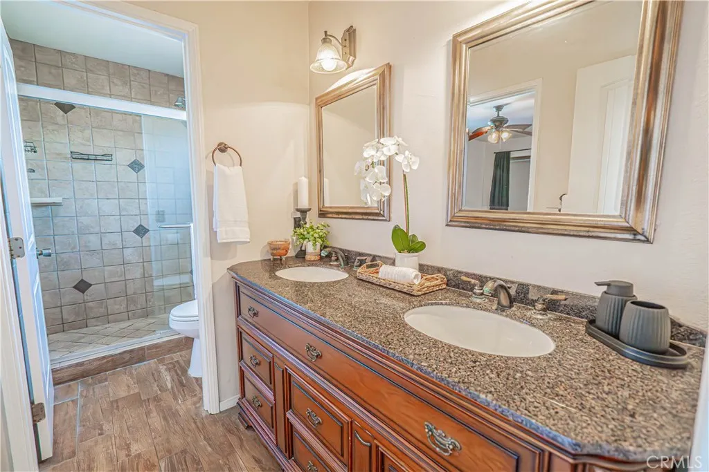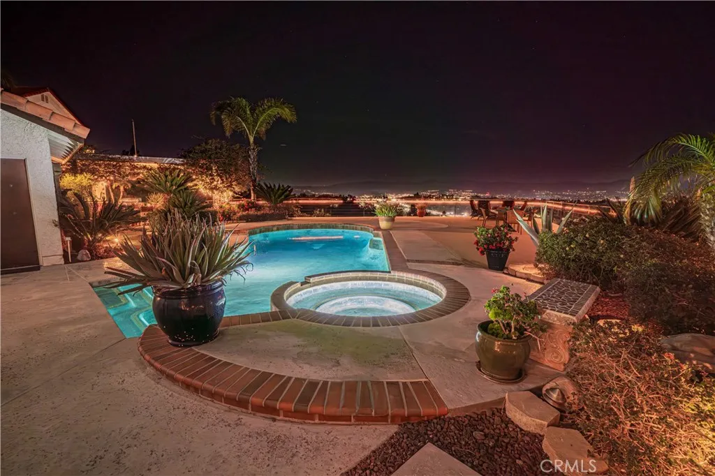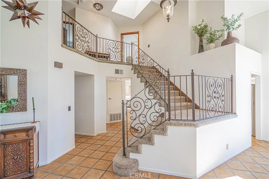 STUNNING PANORAMIC VIEWS OF THE ENTIRE SANTA CLARITA VALLEY FROM THIS BEAUTIFUL SPANISH REVIVAL HOME! The home has a large garage conversion living quarters. Which includes a walk-in closet, work station, living area, and an attached bathroom. The bathroom can also be accessed from the pool area. This is great for multi-generational family living, airbnb or peerspace rental income. Open and spacious floor plan with high ceilings. Large family size 4 bed/ 3 bath home, with a downstairs bedroom ensuite and full bath. This Spanish influence-style home has a custom wooden front door that leads into the entryway of the home. The living room has cathedral-style ceilings, custom lighting, beautiful tile floors, and lots of windows for natural light. The wrap-around staircase has a custom wrought iron railing. Upgraded kitchen with copper style tre ceiling, recessed lighting, custom tile countertops, backsplash, and stainless steel appliances. Kitchen open to family room, features a great breakfast bar area. There is an additional butcher block counter space and a pass-through window for BBQing. The family room has great views of the valley and lush landscaping. There is a beautiful fireplace as well as a ceiling fan. The main bedroom suite has stunning city views, high vaulted ceilings. The main bathroom has walk-in shower w/ custom tile, soaking-tub, tile vanity/w copper sinks, and a huge closet. One bedroom with full bath downstairs which would also make a fantastic office. This secluded home is located on a flag lot and offers lots of extra parking for possible R.V or a boat. Included is a 12 x 24 storage shed. The beautiful landscape features, two beautiful fountains in front and back yard, mature palms, flowering succulents, jasmine vines, gorgeous bougainvillea, and an array of colorful flowers. Very low maintenance and drought tolerant as well. Large usable approx. 11,0000+ sq ft. lot has numerous sitting areas around the stunning pool and jacuzzi. Large outdoor cabana covered in bougainvillea has outdoor lighting for evening entertaining. Cabana also features ceiling fans, T.V./stereo system, and an outdoor kitchen. Large pool and jacuzzi are surrounded by an expansive deck and seating areas. There is also a separate outdoor entrance for the additional living space and bathroom. The home has copper piping, and new energy efficient HVAC system. No HOA , NO Mello Roos.