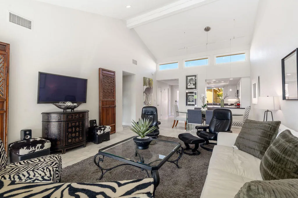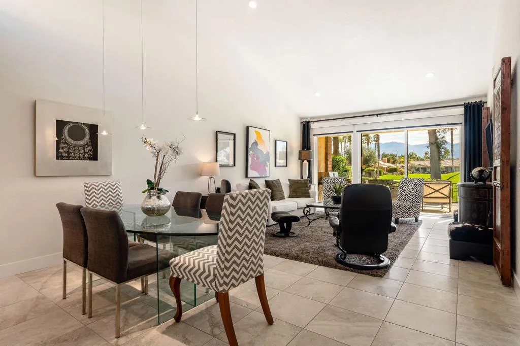 Welcome to this beautifully upgraded condo ideally situated on the 3rd green of the East/South Course, offering stunning golf course and mountain views. A spacious private courtyard welcomes you into a contemporary interior featuring an open-concept design perfect for comfortable living and entertaining. The beautifully updated kitchen showcases quartz countertops, custom cabinetry, and recessed lighting, seamlessly flowing into the bright and inviting living room where the views take center stage.Members enjoy access to three distinct Ted Robinson-designed 9-hole golf courses, a driving range and practice facility, 10 tennis courts, 24 pickleball courts, and 4 bocce ball courts. The Spanish Colonial-style clubhouse serves as a welcoming hub for dining and socializing, and additional amenities include a swimming pool, spa, and a well-equipped fitness room with a variety of cardio and strength-training equipment.