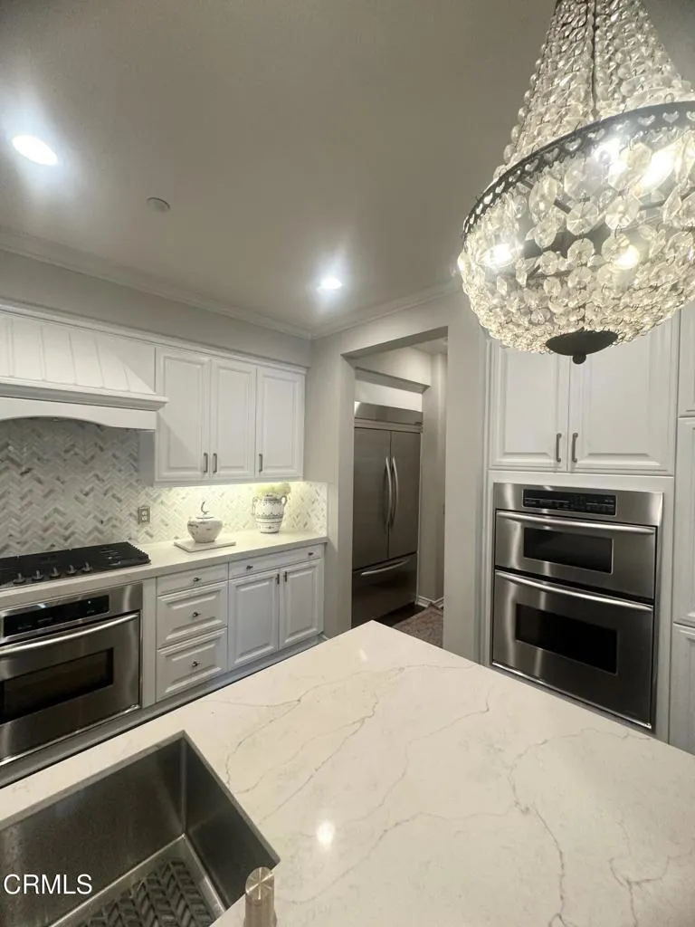 Through the exclusive gates of Covenant Hills, at the end of a quiet cul-de-sac, sits this gorgeous south-facing Castellina Plan 5 townhome offering the perfect blend of luxury, comfort, and indoor-outdoor living. This location is optimum!The newly upgraded kitchen is a showstopper, featuring stunning quartz countertops and an oversized 8′ x 5′ waterfall island, large walk-in pantry, wine cooler, double ovens, microwave, dishwasher, and an oversized built-in refrigerator. The kitchen also provides direct access to the two-car garage for ultimate convenience.The main level showcases a beautiful open floor plan with hardwood floors throughout, seamlessly connecting the living room, dining room, kitchen, and family room to create an expansive great-room feel. Four sets of French doors open to the backyard, enhancing the home’s effortless indoor/outdoor lifestyle.The private backyard sits on an oversized corner lot and features stamped and color-stained concrete, a covered patio, custom fireplace, and a built-in BBQ complete with stone countertops, sink, and refrigerator — ideal for entertaining.The spacious primary suite offers two separate walk-in closets with custom built-ins, a private balcony, and an oversized spa-style bath with dual separate vanities and a large walk-in shower. A downstairs bedroom with adjacent full bath provides flexibility for guests or multi-generational living, while two additional upstairs bedrooms share a full bath. Each bedroom includes plantation shutters, ceiling fans, and new wood flooring.Located within the 24-hour guard-gated enclave of Covenant Hills, just a block from the resort-style Covenant pool, tennis and pickleball courts, and newly remodeled clubhouse and a block below one the inviting parks , this beautifully detailed home offers exceptional lifestyle living in one of Ladera Ranch’s most desirable communities.
