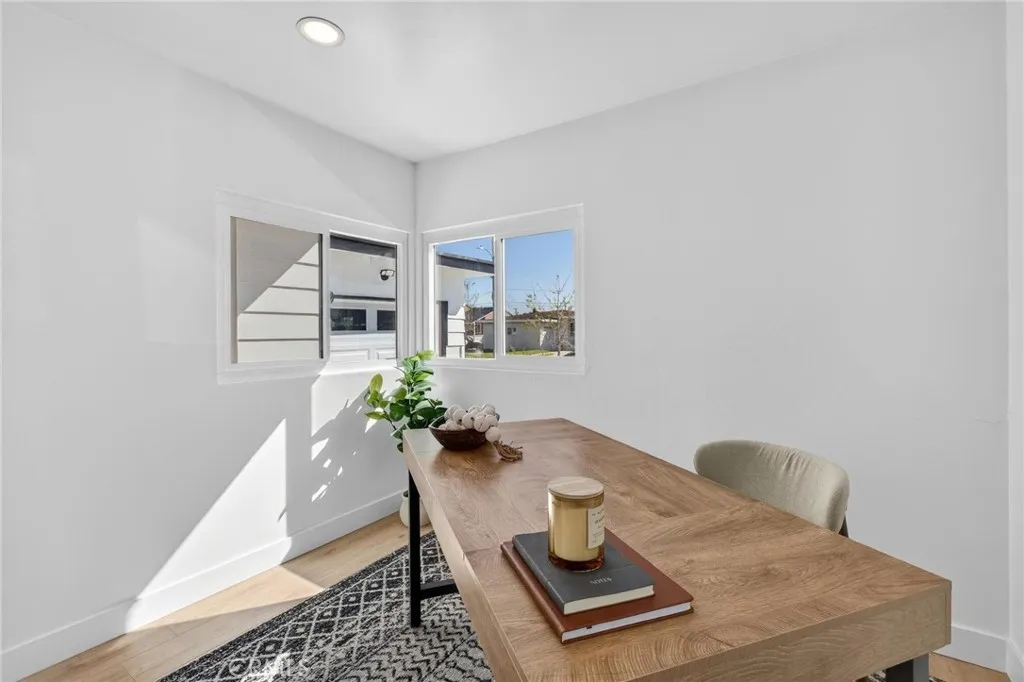 Fully remodeled and filled with natural light, 18901 Haas Ave offers a spacious and thoughtfully designed layout in a quiet Torrance neighborhood. This 4-bedroom, 2-bathroom home PLUS a dedicated office spans approximately 1,850 square feet on a flat 5,000+ square foot lot, delivering modern updates and flexible living spaces throughout. Inside, new wide plank flooring and energy-efficient windows create a bright and inviting atmosphere. The beautifully remodeled kitchen features rich wood cabinetry, light quartz countertops, and stainless steel appliances, opening to an oversized dining area that flows naturally into a step-down living room—ideal for everyday living and entertaining. Just off the kitchen, a generous office provides the perfect space for working from home or creative pursuits, while a convenient stackable laundry area includes a washer and dryer. The home’s layout offers excellent separation, with three bedrooms and a full bathroom located off the dining area, while the private primary suite sits just off the living room with views of the backyard. The oversized living room opens to a patio and a large, flat backyard—offering plenty of room for outdoor dining, play, or future possibilities. Additional improvements include a new roof, new windows, new HVAC, new electrical panel, and updated finishes throughout. Situated on a quiet horseshoe street with minimal through traffic, the home offers a peaceful setting while providing quick freeway access for commuters, along with close proximity to award-winning Torrance schools, shopping, dining, and less than five miles to the beach.