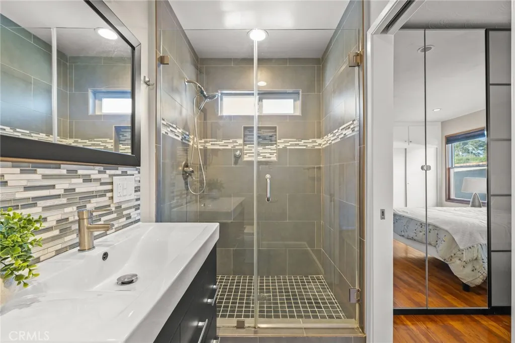 Nestled in the vibrant heart of Silicon Beach, Close to the bustling tech hub of Playa Vista, this Del Rey. 3 bedroom + 2 full bath renovations have enhanced its exterior and interior features, including washer/dryer in unit, AC, hardwood flooring, upgraded master bathroom, updated kitchen. The bedrooms have been enlarged, with the master suite boasting an ensuite bathroom featuring vanity and a standing shower. The kitchen features custom solid cherry cabinetry, granite countertops, and a beautiful travertine mosaic tile backsplash, the upgrades don’t end there. This home also features central air/heat, a cozy electric fireplace. Natural light pours in through the southern exposure, large windows, creating a bright and inviting ambiance throughout the spacious open floor plan. The garage with direct access into the home. Conveniently situated, perfect for the short walk to award-winning Playa del Rey Elementary, hop on your bike and cruise to the beach on the Ballona Creek bikeway, or shop at Whole Foods and catch a movie in Playa Vista.