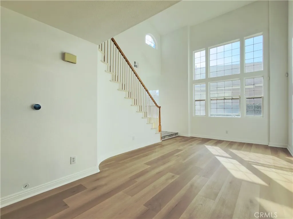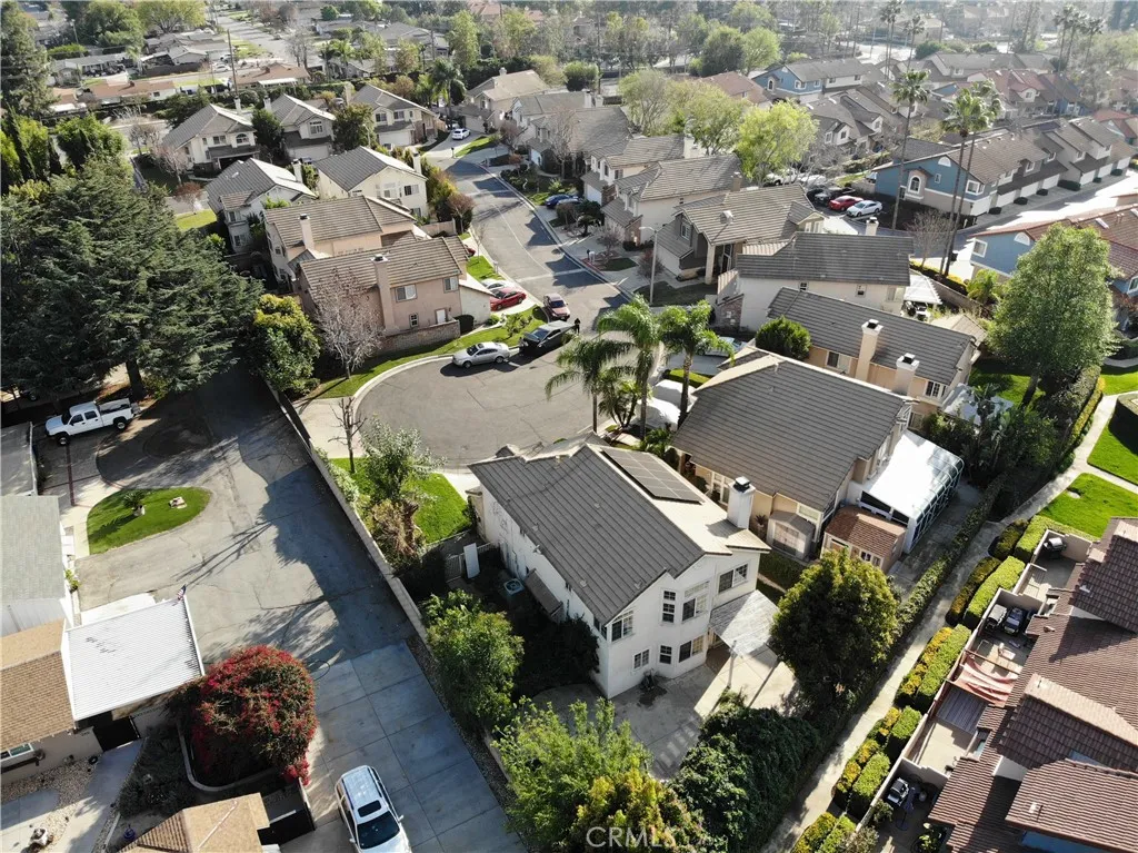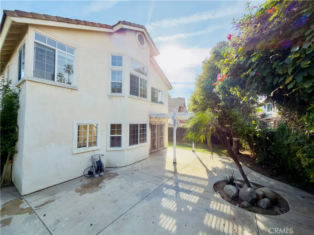 Welcome to 7212 Rancho Rosa Way, Rancho Cucamonga, a beautifully maintained 3-bedroom, 2.5-bath home offering approximately 1,882 sq ft of living space. It is located at the end of a very private cul-de-sac with no neighbors to the east of the property. The home features fresh interior paint throughout and brand-new flooring on the first floor, providing a clean and modern feel. Upon entry, you are greeted by soaring high ceilings and a bright, open living room filled with abundant natural light, creating an inviting first impression. As you move further into the home, the layout flows into a remodeled kitchen that opens to a comfortable family room, making it ideal for both everyday living and entertaining. Upstairs you will find three bedrooms, including a spacious primary suite and two guest bedrooms. The primary bedroom offers a generous layout, while the primary bathroom features a European-style soaking tub and a separate walk-in shower. Both the primary and guest bathrooms are equipped with individual sinks for added convenience. Step outside to a beautifully landscaped backyard filled with a variety of plants and fruit trees, creating a peaceful and picturesque outdoor setting perfect for relaxation or gatherings. The home is also equipped with leased solar panels for enhanced energy efficiency and a 240-volt circuit for a NEMA 14-50 outlet to support electric vehicle charging.