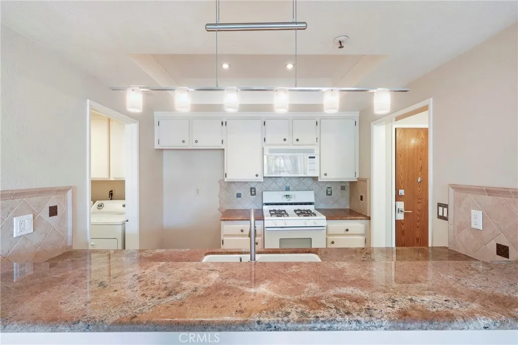 The generous living area is centered around a cozy fireplace and flows seamlessly to a private balcony, an ideal setting for morning coffee or evening relaxation. The functional kitchen features ample cabinetry, a breakfast counter for casual dining, and convenient proximity to the main living spaces, creating a welcoming hub for daily life.