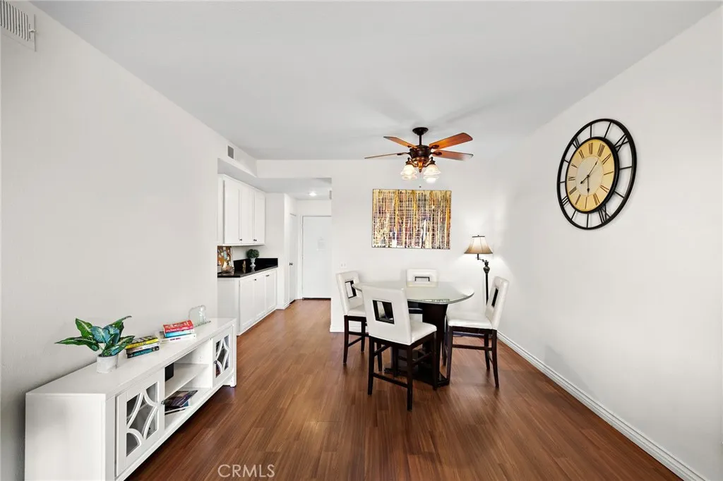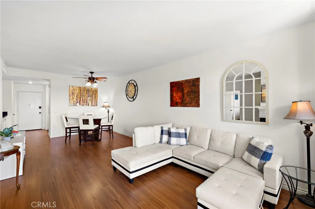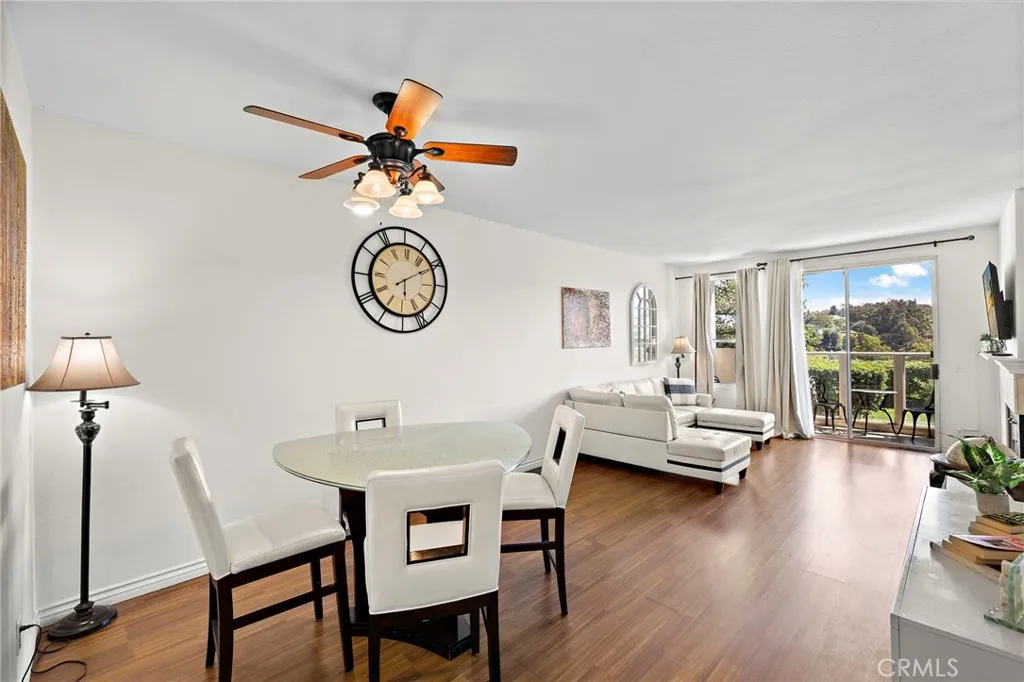 Coastal Hillside Living in Laguna Niguel. Welcome home to this beautifully upgraded residence nestled in the scenic hills of Laguna Niguel—just minutes from the beach and surrounded by the best of Southern California living. Step inside to a light-filled, open floor plan designed for comfort and effortless living. Gorgeous wood laminate flooring flows throughout the living room, dining area, hallways, and bedrooms, creating a warm and inviting atmosphere. The remodeled kitchen is both stylish and functional, featuring upgraded cabinetry, recessed lighting, modern appliances, laminate flooring, and a convenient butler’s pantry serving bar just off the kitchen—perfect for entertaining or everyday convenience. The living and dining rooms are anchored by a stunning gas fireplace, creating a cozy focal point for relaxing evenings. Just beyond, your private covered patio offers the perfect place to enjoy morning coffee or unwind at sunset while taking in serene views of the neighboring golf course and a glimpse of the ocean in the distance. Both bedrooms are generously sized with ample closet space, while the remodeled bathrooms offer tasteful updates and modern comfort. Additional highlights include a raised-panel front door, ceiling fans, baseboards, mirrored closet doors, and thoughtful upgrades throughout.
