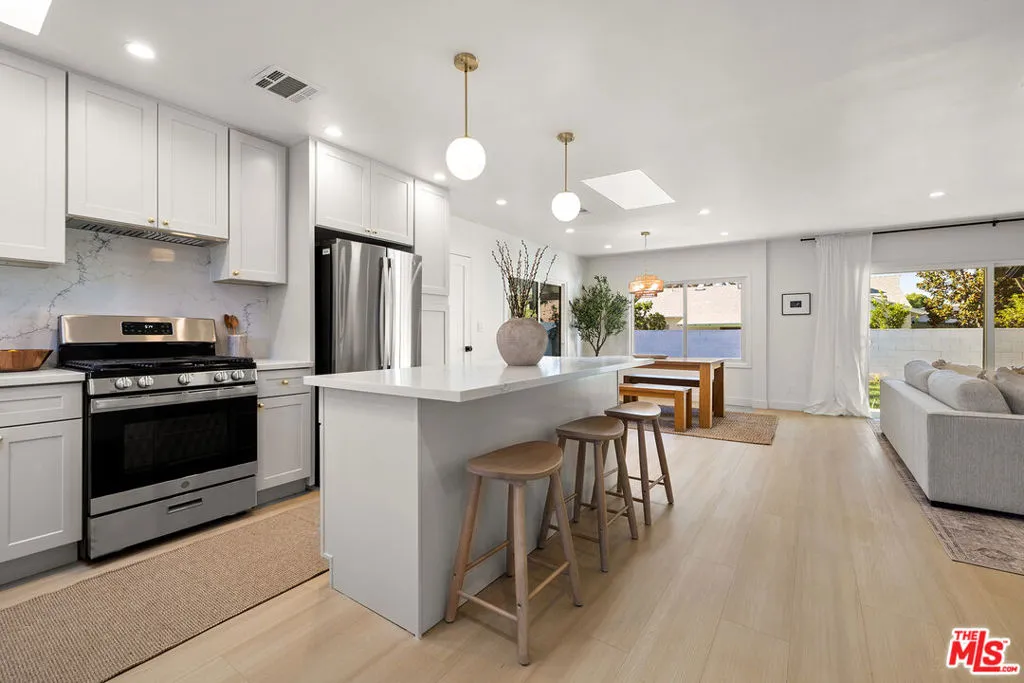 Tucked away at the end of a quiet cul-de-sac in a highly desirable pocket of Woodland Hills, just moments from Walnut Acres, this thoughtfully reimagined single-story residence blends modern design with effortless California living. The home features 3 bedrooms and 2 bathrooms, all brought together by a bright, open-concept layout designed for both everyday comfort and seamless entertaining. Every detail has been carefully curated, showcasing quality craftsmanship and elevated finishes throughout. The primary suite serves as a private retreat, complete with a beautifully redesigned bathroom featuring floor-to-ceiling tile, dual vanities, custom cabinetry, and a spacious walk-in shower. A generous walk-in closet adds both function and luxury. Two additional bedrooms and another redesigned secondary bath offer flexibility for family, guests, or a home office. At the heart of the home, the kitchen is both stylish and functional, equipped for those who love to cook and perfectly positioned to connect with the dining area and center island, creating a natural gathering space. Set on an approximately 6,700 square foot lot, the outdoor space is designed for easy living and entertaining. The backyard features a mix of decomposed granite, gravel, garden boxes and large grassy yard, offering multiple areas to relax from evenings around the fire pit under string lights to covered patio dining year-round. Extensive upgrades include a new HVAC system, Google Nest Thermostat, updated electrical panel, new roof and gutters, luxury vinyl flooring, and a two-car garage with direct access.Ideally located near premier shopping and dining at Westfield Topanga & The Village, The Commons at Calabasas, and Warner Center, with access to top-rated charter schools including El Camino Real Charter High School and George Ellery Hale Charter Academy. A beautifully renovated turnkey opportunity in one of the Valley’s most sought-after neighborhoods offering style, function, and location all in one.