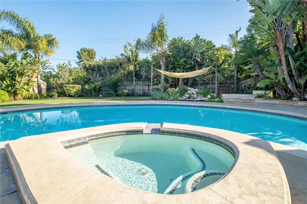 Welcome to an exceptional opportunity in the heart of Rolling Hills Estates, a stunning private oasis at 4 Silverleaf offering the best of Palos Verdes luxury real estate. This beautifully designed single-level estate features 4 bedrooms, 4.5 bathrooms, and approximately 3,369 sq ft of living space on an expansive 17,917 sq ft lot, perfectly blending elegance, comfort, and seamless indoor-outdoor living. Designed for both relaxation and entertaining, this luxury home in Rolling Hills Estates showcases an ideal open floor plan with a spacious family room that flows effortlessly to the resort-style backyard. Step outside to your own retreat featuring a sparkling pool, hot tub, and expansive patio areas, perfect for hosting gatherings or enjoying peaceful afternoons surrounded by lush greenery. Multiple outdoor sitting areas, including a tranquil fountain with waterfall, create a serene ambiance rarely found in Rolling Hills Estates homes for sale. Inside, the home is highlighted by beautiful hardwood floors, multiple fireplaces, and a warm, inviting atmosphere throughout. The gourmet kitchen features granite countertops, a center island, and an indoor BBQ—ideal for entertaining year-round. The thoughtful layout offers multiple living and sitting areas, maximizing both space and comfort while capturing peaceful garden views from nearly every room. The spacious primary suite serves as a private retreat, complete with a large walk-in closet and a luxurious bathroom featuring both a soaking tub and separate shower. Additional highlights include ample storage, generously sized secondary bedrooms, and well-appointed bathrooms throughout. Ample room to add an ADU in the yard, ask for plans. Located in a highly desirable and tranquil neighborhood, this property offers rare privacy with direct adjacency to the open green space of Chandler Park, including access to a grass area and horse riding ring. Enjoy close proximity to scenic horse trails and walking paths that make Palos Verdes Peninsula real estate so sought-after. This is a rare chance to own a luxury estate in Rolling Hills Estates that combines space, privacy, and an incredible indoor-outdoor lifestyle, perfect for those seeking the finest in Southern California living.