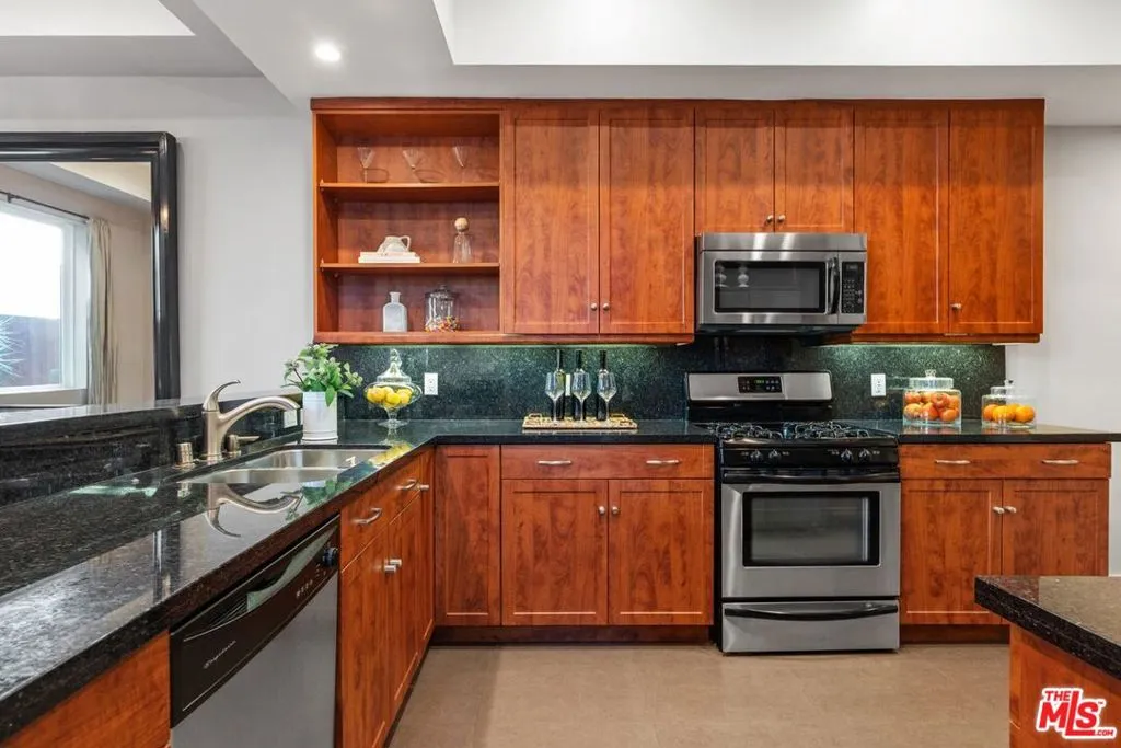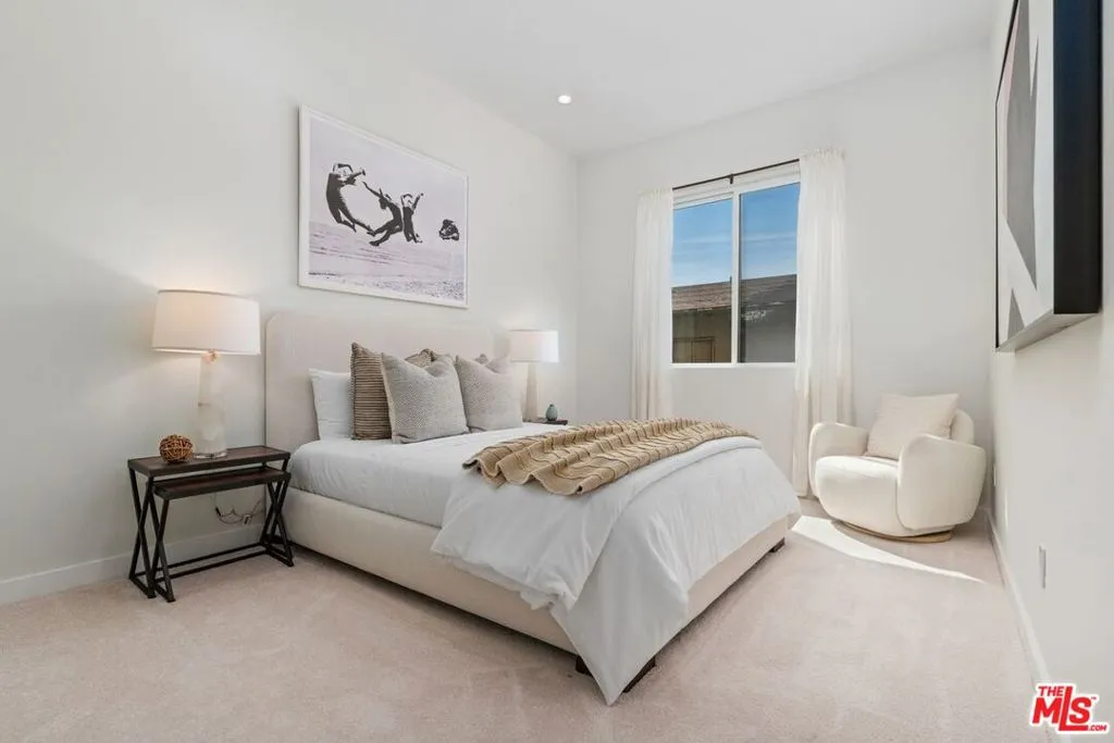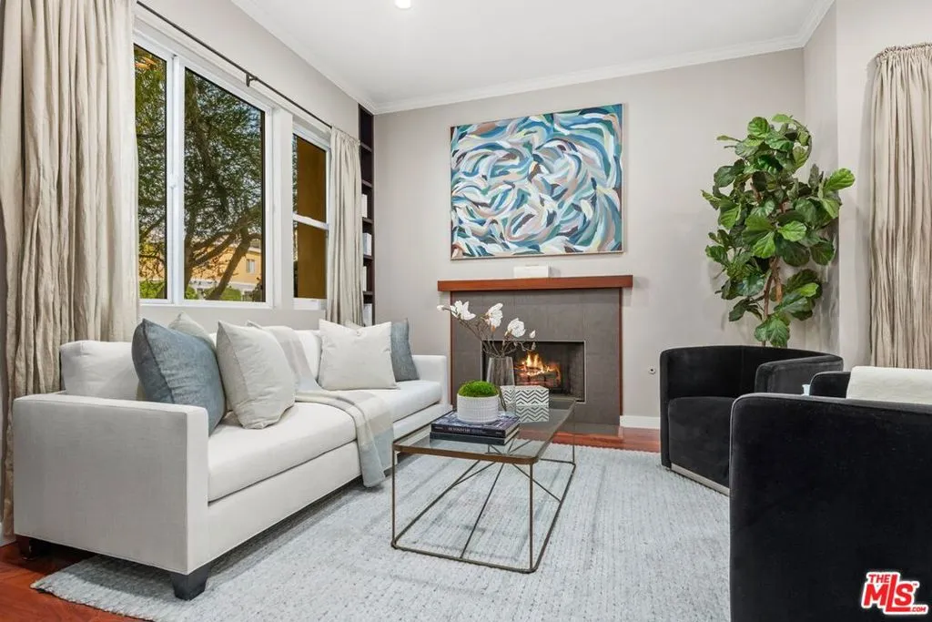 This large townhouse style condo is located in the convenient and desirable Beverlywood area. Rare, front-facing unit feels more like a house with its own private driveway and attached 2-car garage. Inside you’ll find a spacious 4 bedroom, 2.5 bath residence featuring a large, open living room with high ceilings, custom built-in bookshelves and fireplace plus there’s a conveniently located private patio ideal for outdoor grilling. This home has an eat-in kitchen with stainless appliances, granite countertops and abundant cabinetry + a separate dining room. Completing the first floor is a laundry area with washer/dryer, a powder room and convenient direct entry to the oversized 2-car garage with plenty of room for additional storage. Upstairs you’ll find 4 bedrooms and 2 full bathrooms including a peaceful and spacious primary bedroom suite featuring a gas fireplace, walk-in closet plus a large bathroom with soaking tub & separate shower. Three additional bedrooms complete the upstairs. One of the bedrooms is used as an office/study and features built-in bookshelves and custom cabinetry. There are high ceilings, recessed lighting, abundant windows and sliding glass doors located throughout. This stylish & substantial townhouse has it all – welcome home!
