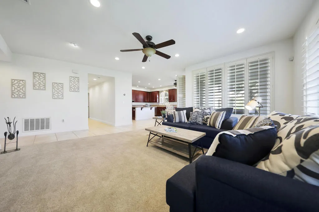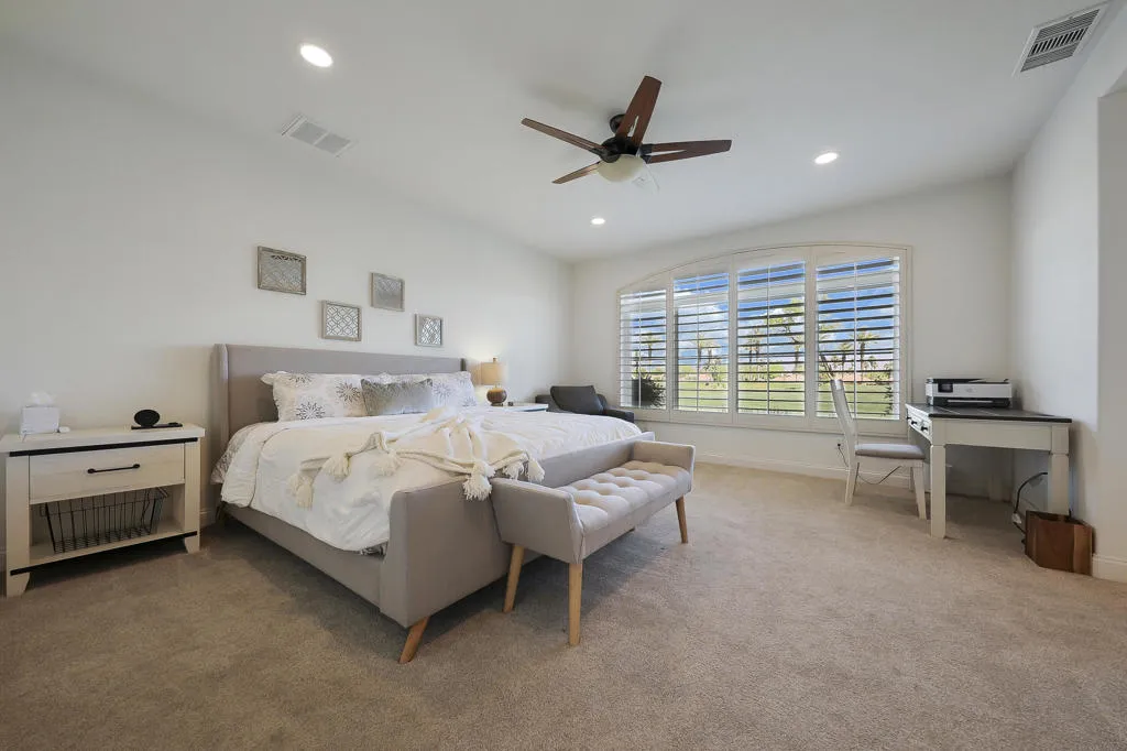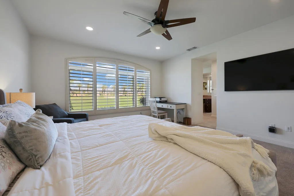 Enjoy resort living lifestyle in Mountain View Country Club. This spacious three bedroom condo is situated on the main floor all on one level with the convenience of an attached two car garage. Kick back and relax to enjoy the views of the lush 9th. fairway and mountains from your private patio. The kitchen with oversized island has Kitchen Aid appliances, granite counter tops and an abundance of cupboard space & drawers. The open living and dining areas make for ease in entertaining and family enjoyment. The spacious corner primary suite offers an oversized closet, and a luxury bath & separate shower with dual vanities. The guest ensuites are located at the other side of the unit for guest privacy; plus a powder room for your guests. There is an individual laundry room with utility sink in hallway to guest quarters for convenient use. The location is close to the Villages pool & spa and in close proximity to the clubhouse, wellness & fitness center and the other amenities of tennis, pickle ball, bocce ball, and heated Olympic sized pool & spa. The clubhouse offers fine dining & casual dining and an expansive patio to take in the majestic mountain views! Unit is tenant occupied at present and atleast 24 hr. notice to view is greatly appreciated. Interior photos will be made available after April 1 st.