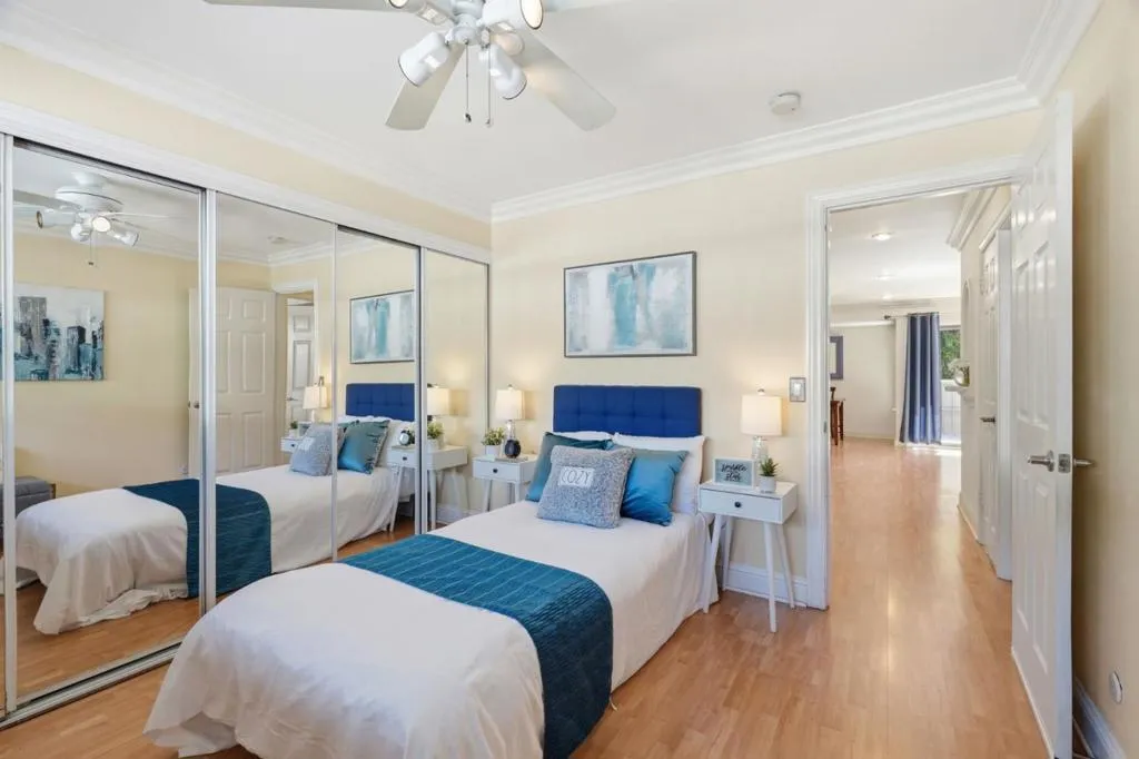 Welcome to Willow Park, a resort style condominium community in the heart of Mountain View. This rarely available, single-story, 2 bed 2 bath 1158 sq ft townhome-style condo offers exceptional privacy with no neighbors above or below Step through the formal entry into a spacious and open living room featuring abundant natural light throughout. A tiled wood-burning fireplace, laminate floors, sliding glass doors leading to the balcony. The home has many upgrades throughout, Recessed lights, crown molding, ceiling fans, Front door has a retractable screen, The kitchen includes granite countertops. Lots of cabinet space, Skylight. Both bedrooms are generously sized and wall to wall closets. Willow Park is a well maintained community offering a swimming pool, clubhouse, EV charging stations, Possibility to add washer and dryer in unit with HOA approval. Close proximity to downtown Mountain View, Castro Street, Major Tech Hub, Various Dining, Options Top rated schools, shopping, Stevens Creek Trail, Nearby Freeways, Caltrain this home has been beautifully maintained and truly reflects pride of ownership.