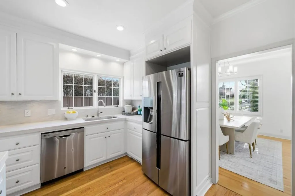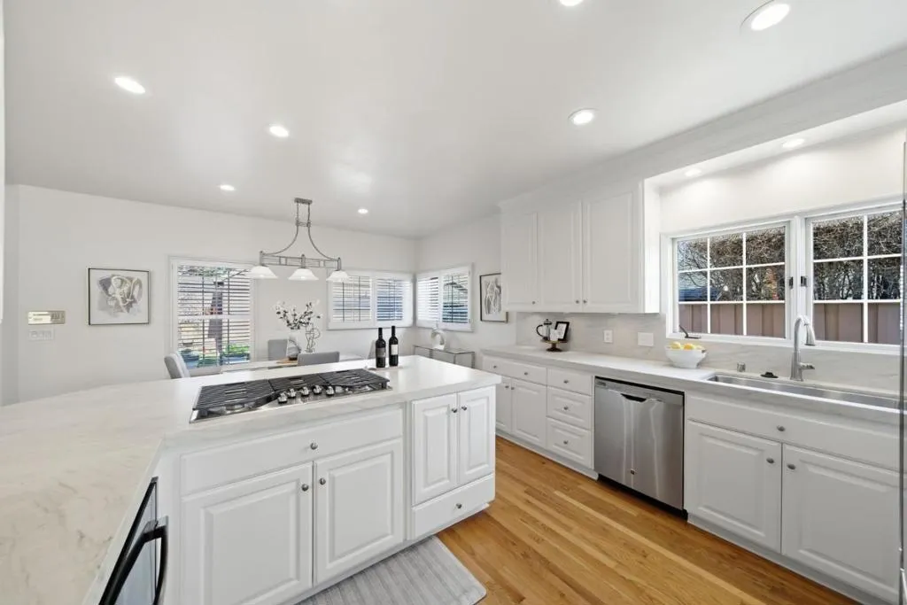 Completing full exterior Painting. 4-bedroom, 3-bathroom home located in the Desirable Rose Garden Neighborhood. Home and garage rebuilt from the foundation up in 1998. Boasting a generous 2,698 sq ft, this residence offers high ceilings, comfort and functionality. The Spacious kitchen is a chef’s dream with a new gas cooktop, new quartzite countertops, and new self-cleaning oven, complemented by modern appliances including a top end refrigerator. Enjoy meals in the formal dining room, breakfast bar, or breakfast room. Huge master bedroom suite with all stone new master bathroom featuring large jacuzzi tub, large shower, skylight, wall mounted Toto toilet, wall mounted custom vanity and his and hers huge walk-in closets. Three bedrooms and two full baths upstairs and one bedroom and one full bath downstairs. Practicality meets convenience with a laundry facility on the upper floor. Interior features include: Impressive large two story living room, large dining room and a huge family room with fireplace over looking new concrete patio and garden. One car garage includes second story artist studio, extra long driveway, storage shed & electric security gate. Basement includes water heater, furnace storage cabinets. All new ceiling lighting.. Seismic upgrades meet 2019 CBC code