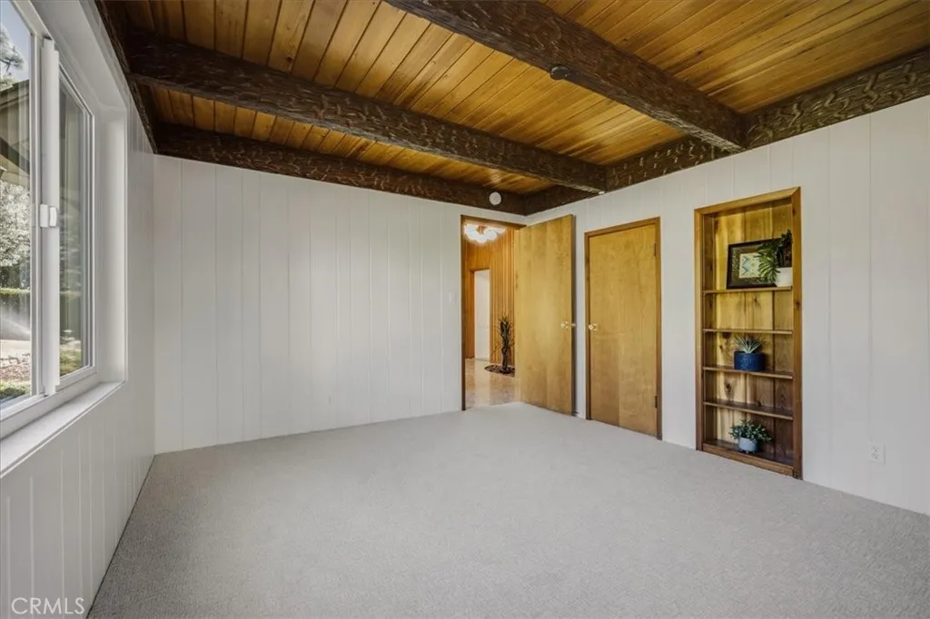 To the left of the entry, you’ll find the sophisticated formal living room complete with wall to wall slumpstone fireplace and walnut mantle, immediately adjacent to the formal dining room with walnut paneling and grand view of the valley below—ideal for entertaining.