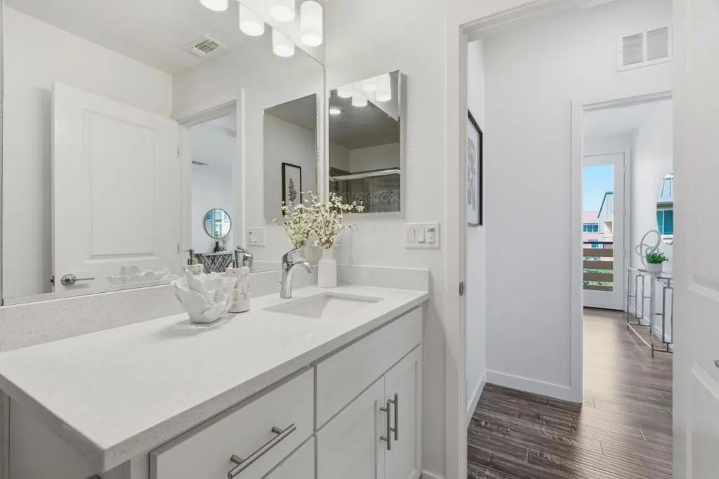End-unit townhouse-style condo. Bright with abundant natural light. Hill views. One of the largest floor plans in the Onyx community in North San Jose. Built in 2017 by Pulte Homes. Spacious layout with a formal dining area and a living room with a balcony overlooking the lawn. The gourmet kitchen showcases a large island, stainless steel appliances, a gas cooktop, and custom white cabinetry. The master suite upstairs boasts a dual-sink vanity, a large shower, and a generous walk-in closet with a custom built-in organizer. The additional three bedrooms are perfect for guests, family, or a home office. Two car garage. Tankless water heater. Low hoa $250 monthly. Community amenities include a children’s play area, BBQ area, and dog park, with nearby Newbury Park for outdoor recreation. Conveniently located near downtown San Jose and Japantown, with easy access to Costco, Ranch 99, H-Mart, BART, VTA, and freeways 101/680.