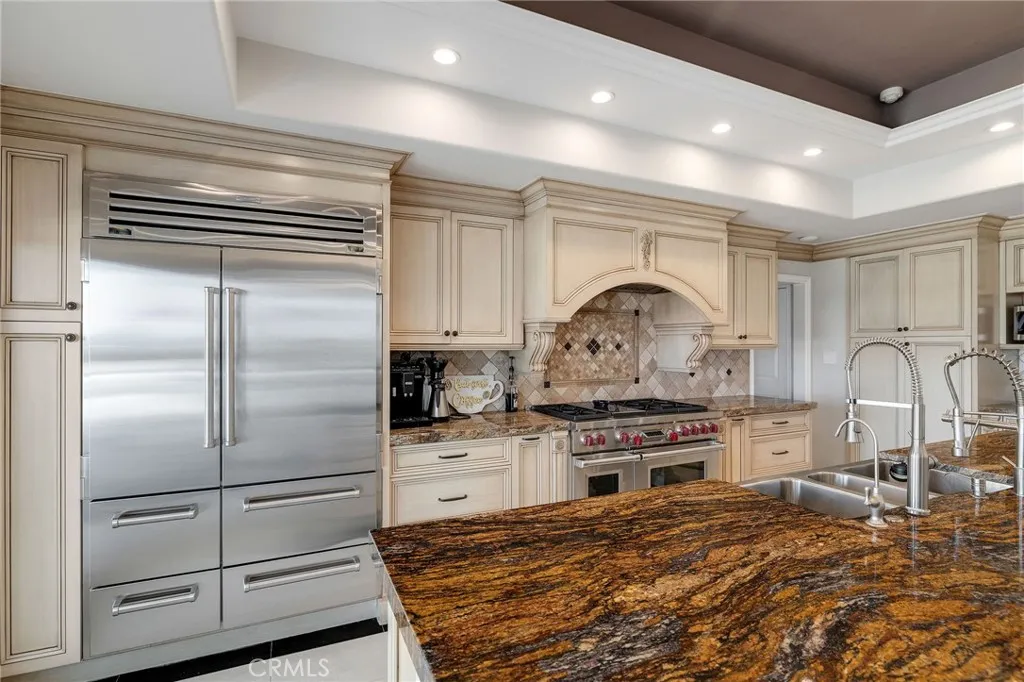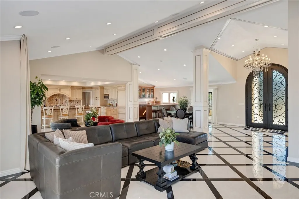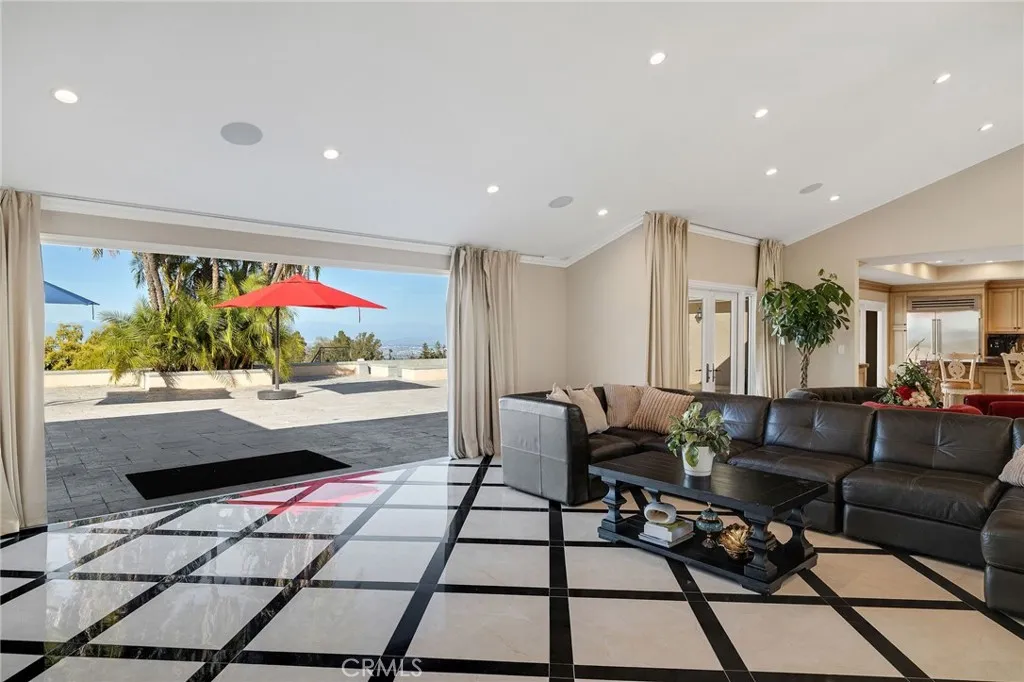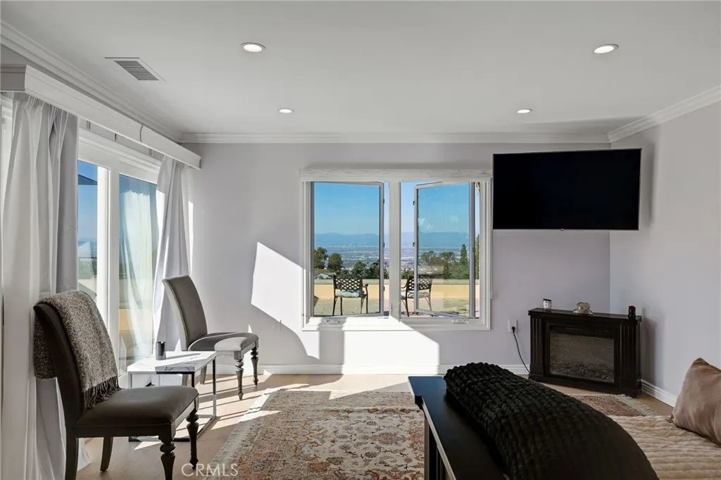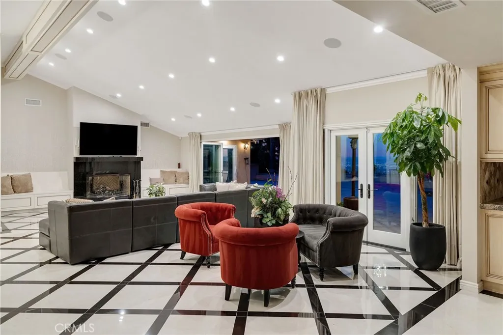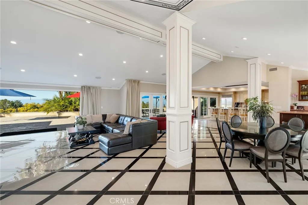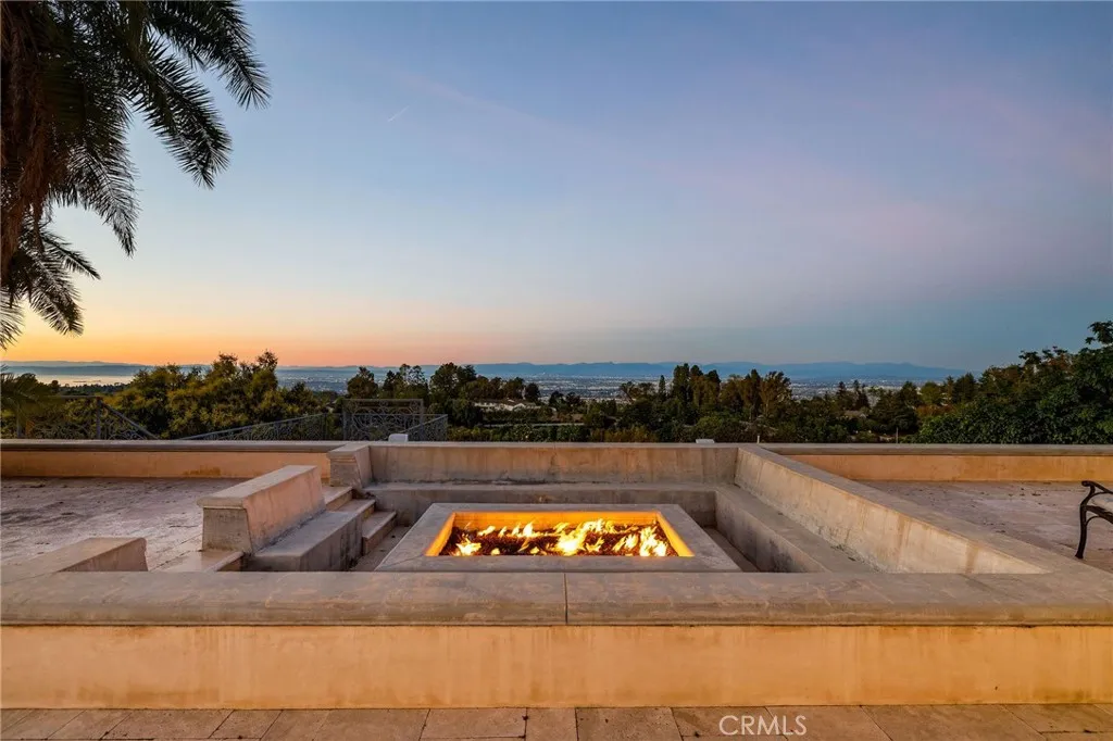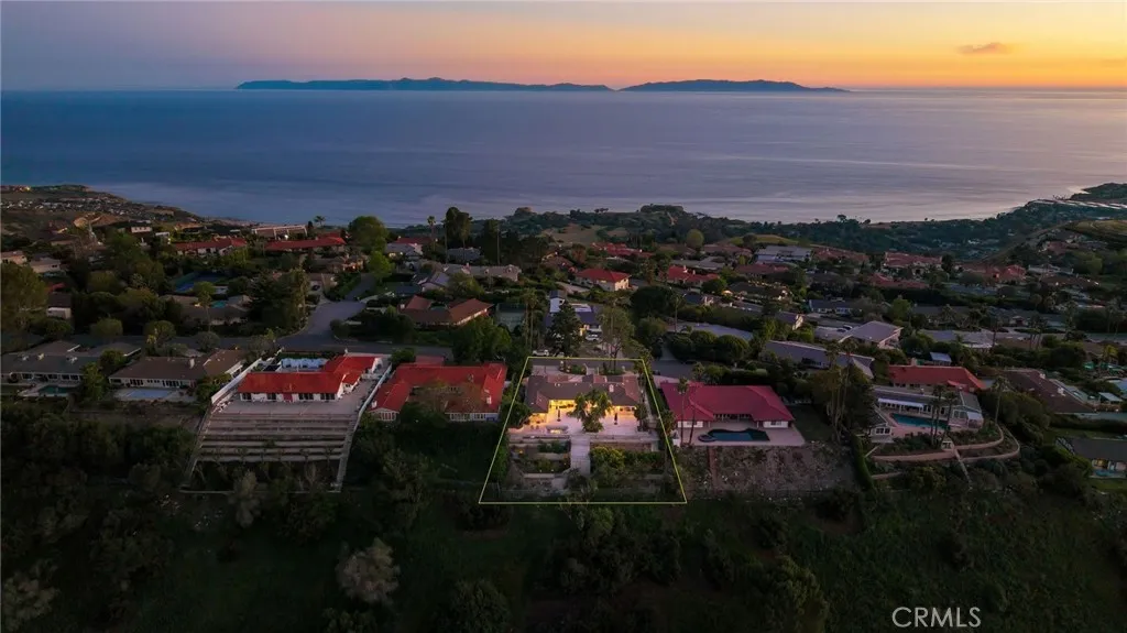 Love at first sight. The circular, stone horseshoe driveway with steps leads you to this thoughtfully curated, extraordinary single level residence with impeccable craftsmanship and breathtaking views, on an over 18,000 square foot lot, set atop on a cul-de-sac in the exclusive and sought after Del Cerro neighborhood of Palos Verdes. As you step inside this remarkable and exquisitely custom-designed home through the grand front doors, you are greeted with a spectacular expansive, open-concept floor plan with soaring ceilings and a wall of windows and bi-fold sliding glass doors, flowing seamlessly, capturing stunning views of city lights and ocean, thoughtfully integrated indoor and outdoor living for effortless entertaining and an uninterrupted serenity. This exceptional floor plan and the sprawling backyard and patio with intricate stonework integrates living, dining and entertaining, a year-round comfort and enjoyment. An impressive signature marble fireplace anchored by two custom hand-painted walls and built-in seating invites extra warmth to the living room. The dining area is adjacent to the elegantly designed bar and an opulent chandelier. A standout feature, a culinary master piece, a tastefully-designed kitchen with twinkling lights, attractive center island and seating, two sub-zero refrigerators, a Wolf stove is ideally situated adjacent to the great room. On the West side, a master bedroom with view, ample closet space and an impressive ensuite bathroom. Three more bedrooms and an attractive bathroom with double sinks and shower and an elaborately designed powder room completes this section. On the East side, the primary bedroom impresses with breathtaking views, a remarkable walk-in closet, and an elegant ensuite bathroom with double Onyx sinks and shower. A separate laundry room with cabinets and a two car attached garage with direct access and a charming bonus room/office (not included in the square footage) completes this section. Other outstanding features include central heating and air-conditioning, recessed lighting, centralized vacuum system, two water filters (one alkaline), Lutton electric lights, two tankless water heaters, a smart home automation and surround sound system throughout, a large fire pit, a built-in barbecue and fruit trees including orange, tangerine, pomegranate, lemon, avocado, kumquats, pears, and passion fruit. A private oasis, to enjoy and build memories for years to come.