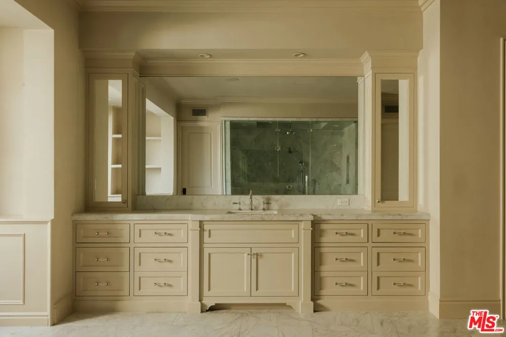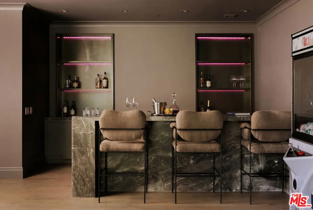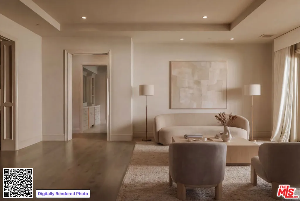 Set on a quiet street in coveted Hidden Hills, this custom Traditional estate delivers sweeping city and pastoral views from an expansive private lot. The light-filled residence was designed for seamless indoor-outdoor living, featuring a spectacular open floor plan with a chef’s kitchen boasting dual islands that flows into a dramatic great room with walls of disappearing glass. Designed for both everyday living and grand-scale entertaining, the home offers a private theater, game room with wet bar, executive office with fireplace, gym, and massage room. The luxurious primary suite is a true retreat with a sitting area, dual oversized closets, spa-like stone bath, and a private balcony overlooking the surrounding landscape. An attached guest suite with its own entrance includes a bedroom, bath, kitchenette, sitting area, and courtyard. Resort-style grounds showcase a sparkling pool and spa, expansive covered entertaining patio with outdoor kitchen, fire pit lounge, circular driveway, six-car garage, and abundant guest parking creating a premier Hidden Hills compound built for the ultimate California lifestyle.
