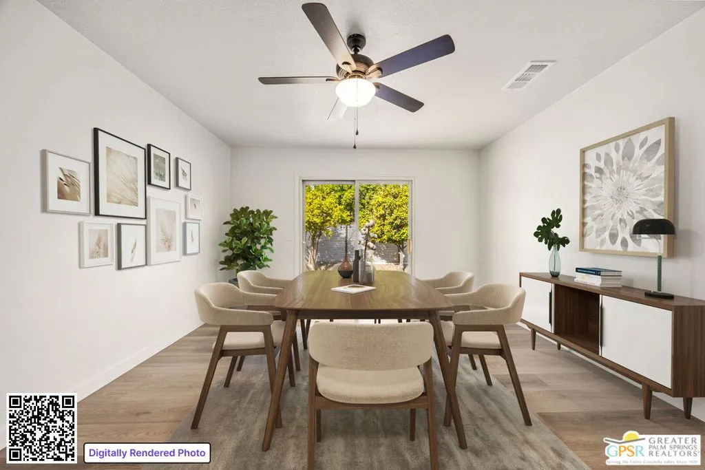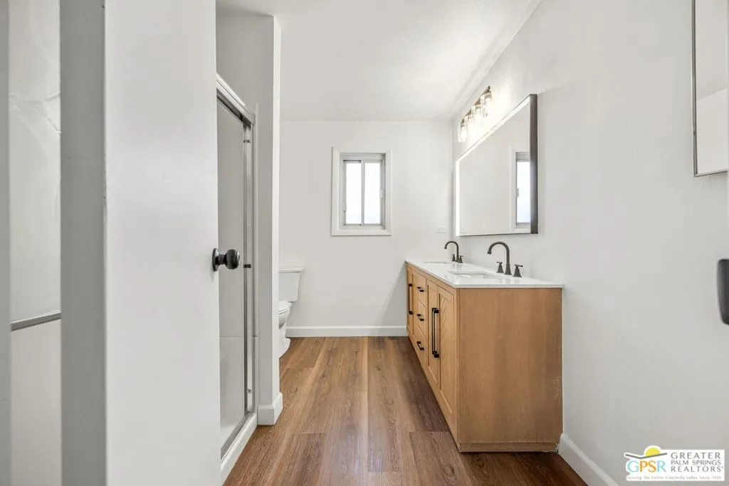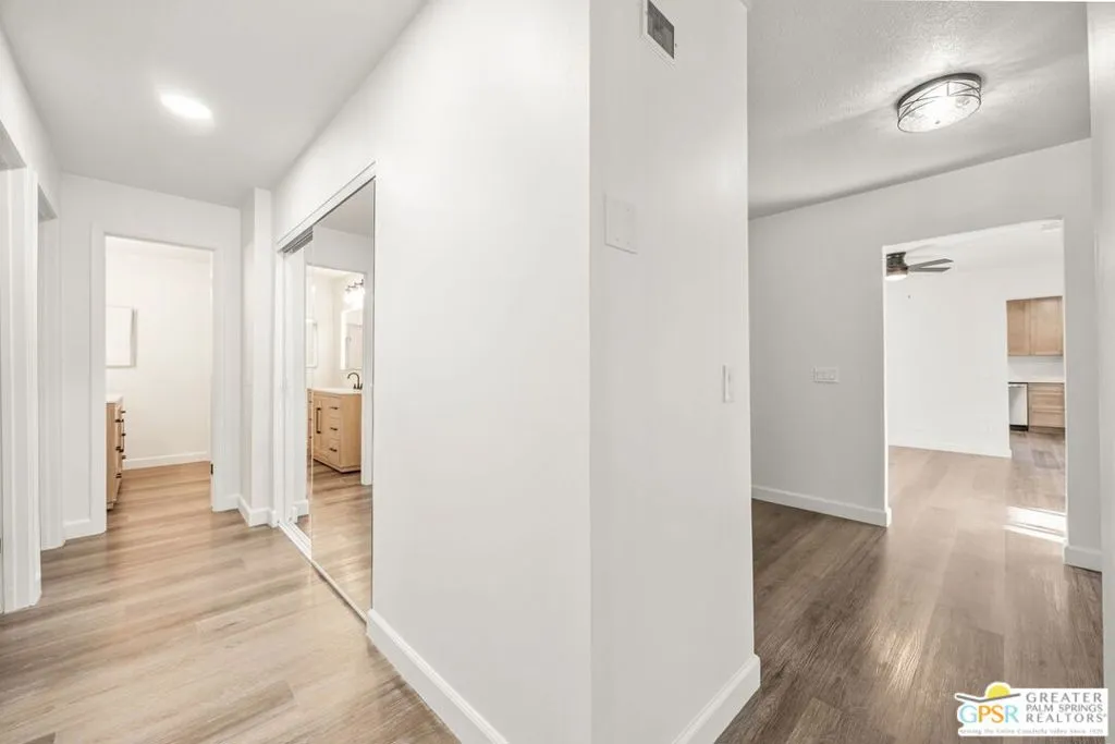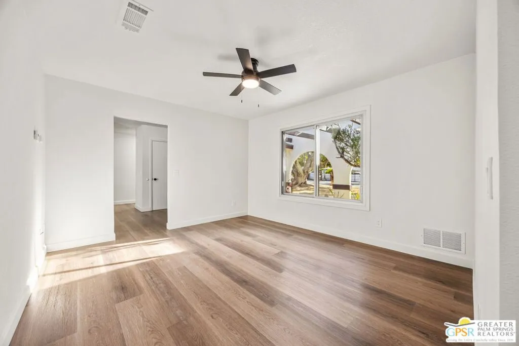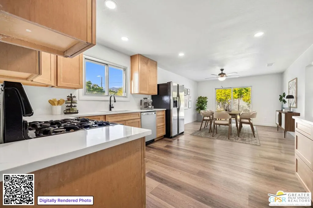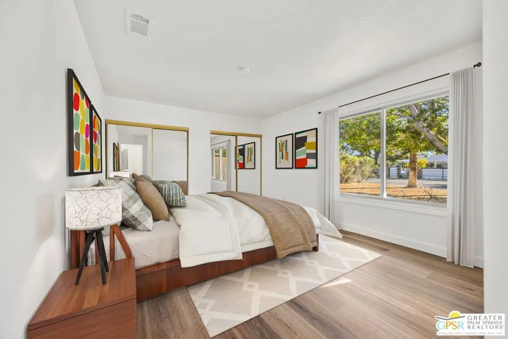 Fully remodeled and move-in ready, this stunning 3-bedroom, 2-bath home offers approximately 2,050 sqft of elevated living on a desirable corner lot in Palm Springs. Blending timeless Spanish-inspired architecture with modern upgrades, the home has been thoughtfully renovated inside and out. The light-filled interior features an open layout, wide-plank flooring, and a beautifully updated kitchen with sleek cabinetry, stainless steel appliances, and clean, contemporary finishes, along with a versatile den/formal dining room. The spacious living area is anchored by a striking stone fireplace and opens seamlessly to the outdoors through sliding glass doors. Both bathrooms have been fully updated with modern, spa-like finishes, while all three bedrooms offer comfort and flexibility. Fresh exterior paint and desert landscaping enhance the home’s curb appeal, while the expansive lot provides ample space to create a custom outdoor retreat. Enjoy breathtaking mountain views and a prime Palm Springs location close to shopping, dining, and all the best the desert has to offer. A great opportunity to own a fully renovated home with style, space, and potential.
