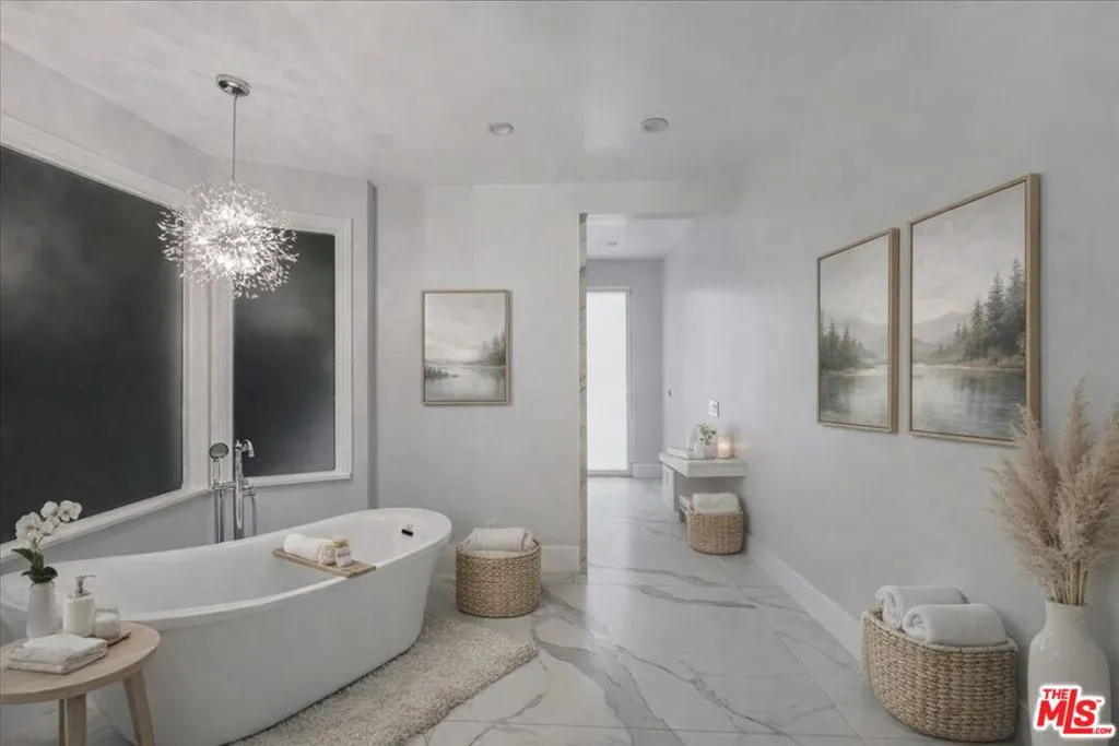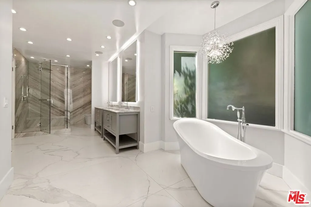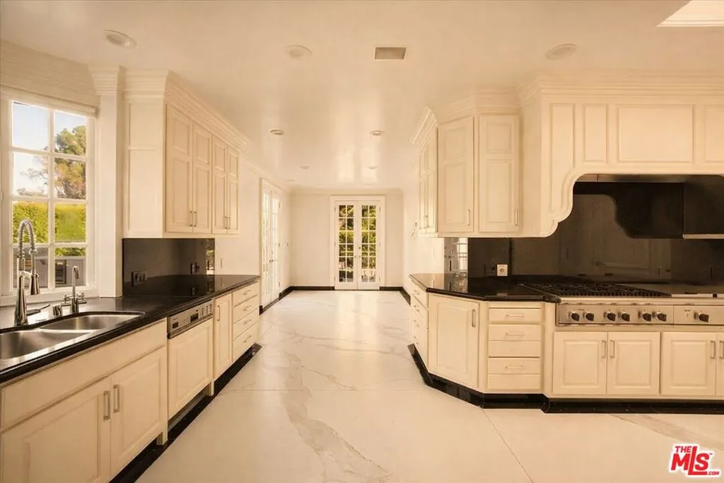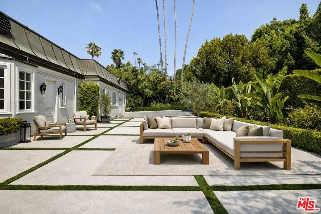 Welcome to this beautifully renovated single-story Hollywood Regency estate, ideally positioned in the coveted Flats of Beverly Hills. Set behind gates on an expansive 24,300+ sq. ft. lot, this nearly 5,800 sq. ft. residence offers a rare combination of scale, privacy, and effortless indoor-outdoor living all on one level. Designed for both refined living and entertaining, the home features four spacious bedrooms and six well-appointed bathrooms, including a serene primary suite with a spa-inspired bath and generous walk-in closet. The main living spaces are thoughtfully laid out, with multiple formal and informal areas, a gourmet kitchen, and a dedicated dining room creates a seamless flow for everyday living or larger gatherings. Outdoors, the estate transforms into a private resort. Lush, mature landscaping surrounds a sparkling pool and expansive patio areas, offering complete privacy and a tranquil setting for entertaining or relaxation. A large motor court provides exceptional on-site parking for 15+ vehicles an uncommon amenity in this location. Moments from the best of Beverly Hills, this property delivers a rare opportunity combining scale, security, and timeless design in one of the city’s most sought-after neighborhoods. Available furnished – inquire for pricing. Photos have been staged virtually by AI.