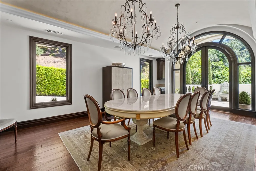 Designed to live well and host effortlessly, the main level includes formal living and dining rooms, a family room, and a chef’s kitchen equipped with dual sinks, two dishwashers, and Sub-Zero and Viking appliances. A custom bar adds another layer for entertaining.