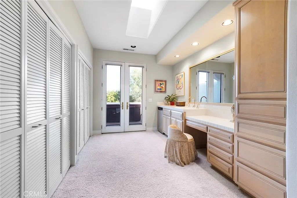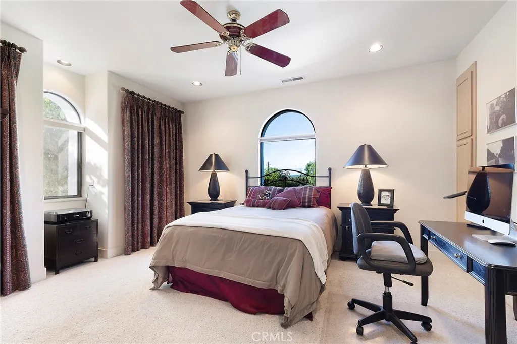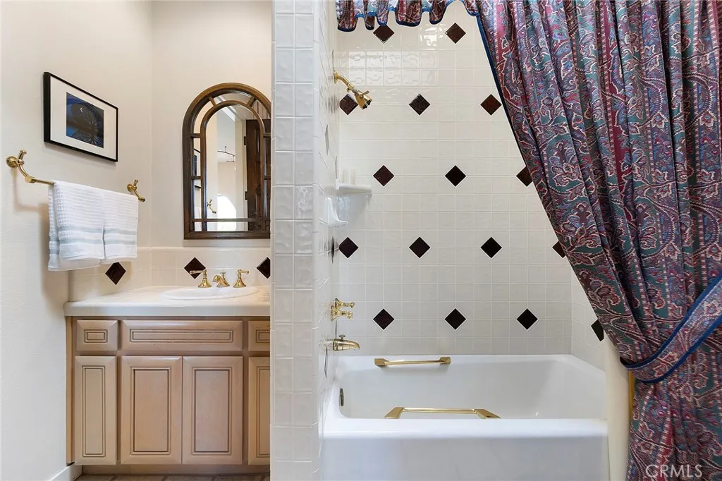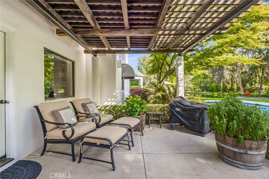 An elegant dining room opens to a charming courtyard, perfect for al fresco dining. The flexible layout includes a private office or den overlooking the pool, a nearby full bath, and a secluded downstairs bedroom with its own half bath—ideal for guests or extended living.