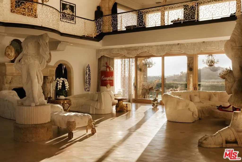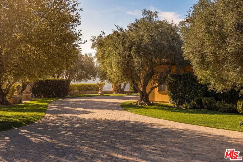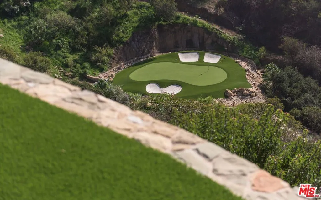 Set across more than 10.5 gated acres along iconic Mulholland Drive, Villa Colibri is a rare resort-caliber compound estate defined by its very own private 24-hole par-3 golf course, expansive outdoor amenities, and sweeping canyon, lake, and mountain views. Designed for large-scale entertaining and private enjoyment alike, the estate offers an exceptional lifestyle experience seldom found in Beverly Hills. The grounds are the centerpiece featuring a professionally designed golf course by Dean Reinmuth, a regulation tennis court with illuminated pavilion, two pickleball courts, bocce court, and multiple resort-style water features including two swimming pools, reflecting and wading pools, a waterfall, and fountains. Formal gardens, citrus groves, manicured lawns, and a series of terraces create a park-like setting ideal for hosting events ranging from intimate gatherings to large celebrations. A stately dual-gated entrance, including separate service access, leads to an expansive motor court with substantial on-site parking capacitywell-suited for large-scale entertaining. The main residence reflects classic European design, offering grand scale, volume, and timeless architectural detailing throughout. A dramatic great room with approximately 30-foot ceilings, coffered detailing, and dual sweeping staircases serves as the focal point of the home. Interior finishes include limestone, marble, and hardwood flooring, complemented by custom fireplaces, imported antique elements, and designer lighting. The chef’s kitchen is equipped for both daily use and catered events, featuring an oversized island, professional-grade appliances, butler’s pantry, and a full secondary prep kitchen. Retractable glass walls open to expansive terraces, creating seamless indoor-outdoor flow.Additional amenities include a library/den, theater lounge with bar, fitness studio, staff quarters, and a temperature-controlled wine cellar. The upper level is dedicated to two primary suites with private terraces and spa-style baths, connected by a loft-style walkway. Five additional en-suite bedrooms are located on the main level with separate access points for guests or staff. A detached guest residence with its own pool, kitchen, and accommodations provides flexibility for extended stays or hosting. Villa Colibri represents a rare opportunity to acquire a large-scale, amenity-rich compound in a prime Beverly Hills location, offering privacy, land, and a full suite of recreational and entertaining features.