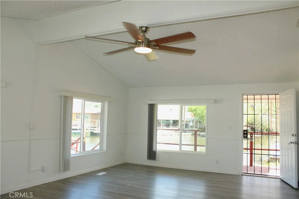 Inside, the spacious two-bedroom, two-bathroom layout is bright, clean, and ready for immediate enjoyment. The open-concept boasts vaulted ceilings in primary living area. Natural light flows from the large windows facing the water views, making the home feel even more expansive. Kitchen is complete with granite counters, cabinets and matching new appliances. Brand new flooring and paint. Primary bathroom has walk in shower, soaking tub, and double sinks. New double-pane windows giving extra insulation. A peaceful neighborhood vibe that feels worlds away from the hustle and bustle.