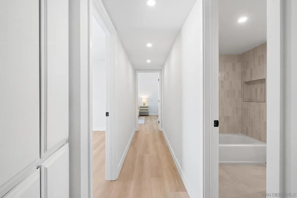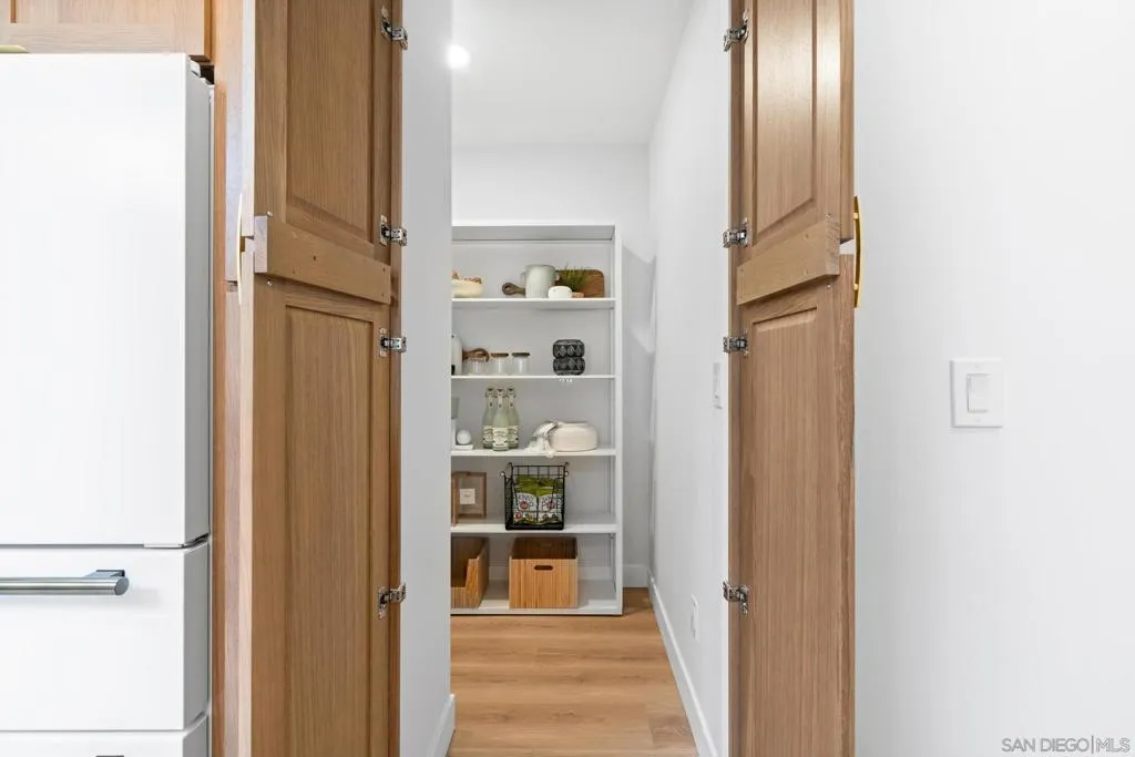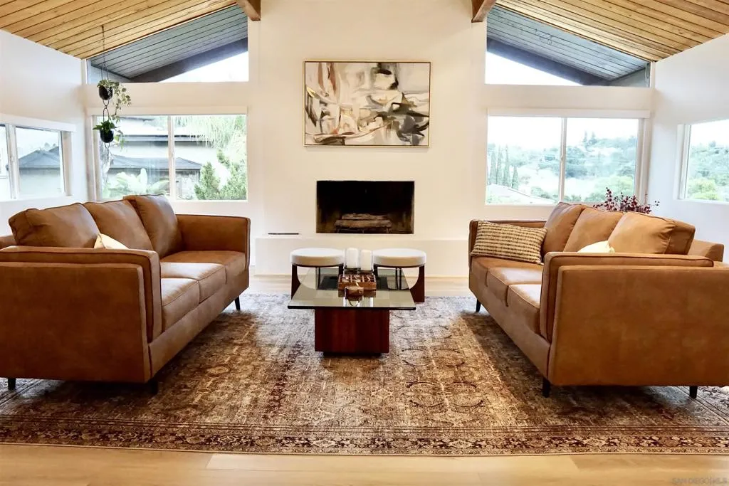 Welcome to your elevated escape! This fully reimagined Mt. Helix retreat offers 4 bedrooms, 3.5 bathrooms, and 3,308 sq ft of thoughtfully designed living space. The open yet smartly divided layout blends flow and function, perfect for entertaining. Soaring wood-beam ceilings, expansive windows with treetop views, and modern fireplaces add warmth and style throughout. The chef’s kitchen is the heart of the home, featuring a ZLINE 6-burner range, Il Forno appliance package, natural Taj Mahal countertops, secret walk-in pantry, and customizable cabinet interiors. The adjacent family room includes a stone fireplace, redwood deck access, and backyard views for effortless indoor-outdoor living. Upstairs, the serene primary suite is a true sanctuary. The spa-like bath features a traditional showerhead, body sprayer, and a waterfall shower cascading from a skylight. A discreet niche keeps essentials tucked away for a clean, calming feel. Downstairs offers a flexible bonus room—ideal as a gym, playroom, or potential 5th bedroom—and a second ensuite perfect for guests. Outdoors, enjoy 0.44 acres of terraced land, lush landscaping, redwood decking, and a freshly re-plastered pool with new energy-efficient equipment. Owned solar, a detached shed with utilities, and an enclosed dog kennel complete this exceptional property. Offered furnished, this home also presents an excellent opportunity as an investment or short-term rental.