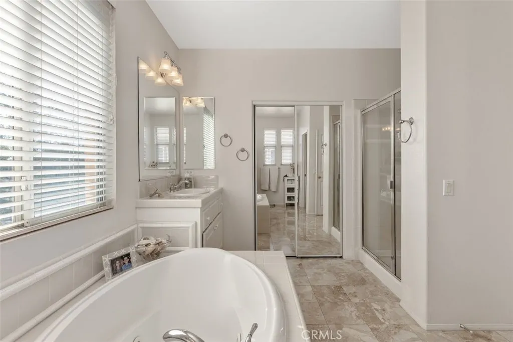 Beautifully upgraded Northpark home located on a private premium lot overlooking a lush greenbelt. This light-filled open-concept residence features elegant tile flooring, plantation shutters, recessed lighting, and sliding glass doors that create a bright and inviting atmosphere throughout. The spacious chef’s kitchen offers quartz countertops, glass tile backsplash, stainless steel appliances, center island with bar seating, and a walk-in pantry, opening seamlessly to the dining and living areas ideal for both everyday living and entertaining. The expansive primary suite includes a cozy retreat with fireplace and a spa-like bathroom with dual vanity areas, soaking tub, separate enclosed shower, and a large walk-in closet. Step outside to the stone-look patio with plenty of space to entertain while enjoying peaceful greenbelt surroundings. Residents of Prestigious Northpark enjoy resort-style amenities including a clubhouse, five pools and spas, three lighted tennis courts, sport courts, parks, and scenic walking trails. Ideally located near award-winning schools, shopping, and restaurants.