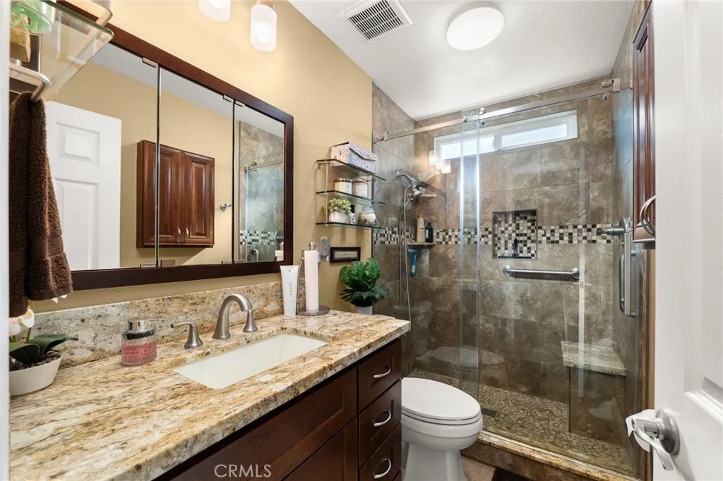 The primary suite boasts a spa-like master bathroom highlighted by a massive walk-in shower with dramatic book-matched stone slabs and a rainfall showerhead. Relax by the living room fireplace or head upstairs to the 4th bedroom and expansive loft, the perfect “flex space” for a home office or media room. Beautiful new flooring flows to the private covered patio, ideal for year-round entertaining. This turnkey gem offers sophisticated design and an open-concept layout in a prime 92505 location. Move-in ready—schedule your tour today!