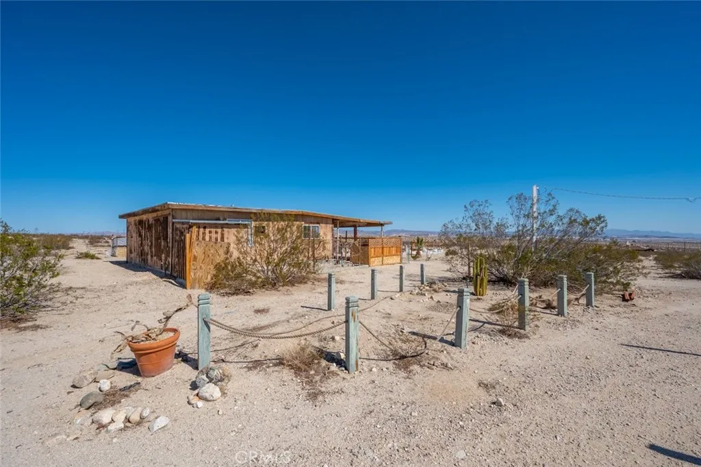Uncover the potential of this diamond in the rough, ready for your vision and a bit of sweat equity to restore it to its full glory. Nestled on the southwest corner of Friendship Ave and Pole Line Road, this property boasts 2.5 acres of expansive land, offering unobstructed views of the desert and majestic mountains that stretch to the horizon. The cabin features 700 square feet of living space, with 1 bedroom and 1 bathroom. The design possibilities are endless, limited only by your imagination. The current owner has had the land assessed by Honomobo, a renowned prefab company, and it has been approved for construction. Water and power are connected. Detailed plans are available should the new owner wish to move forward with this opportunity.