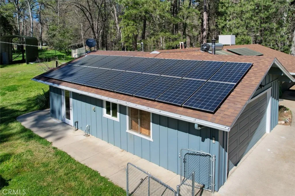 The residence features approximately 1,489 square feet with 3 bedrooms, 2 bathrooms plus an office, and a warm, welcoming interior anchored by a cozy fireplace. Owned, roof-mounted solar adds valuable energy efficiency and long-term cost savings, complementing the home’s thoughtful features including a covered entry and covered concrete patio .